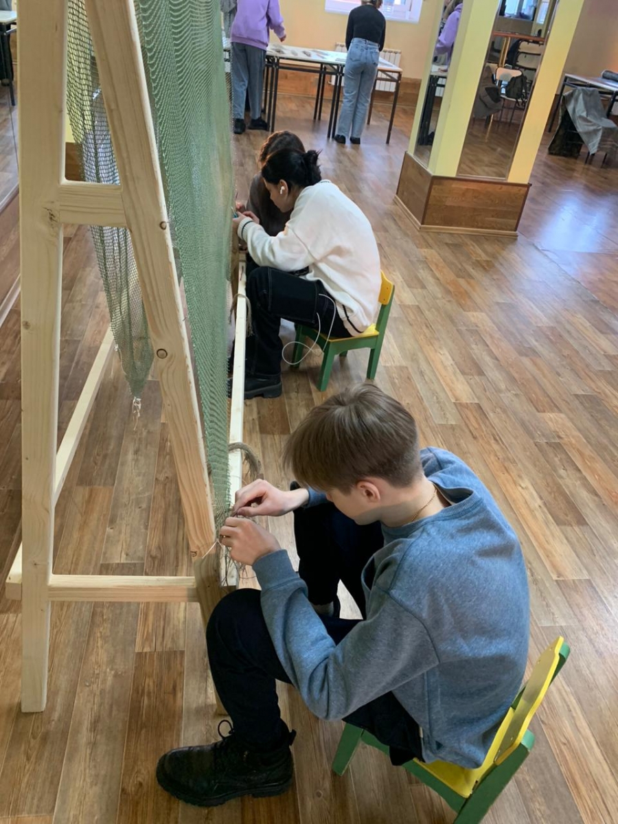 Первыми приняли участие в Акции обучающиеся 8Б класса, которые делали заготовки для маскировочных сетей и халатов, нарезали полоски и вплетали заготовки в маскировочные сети.