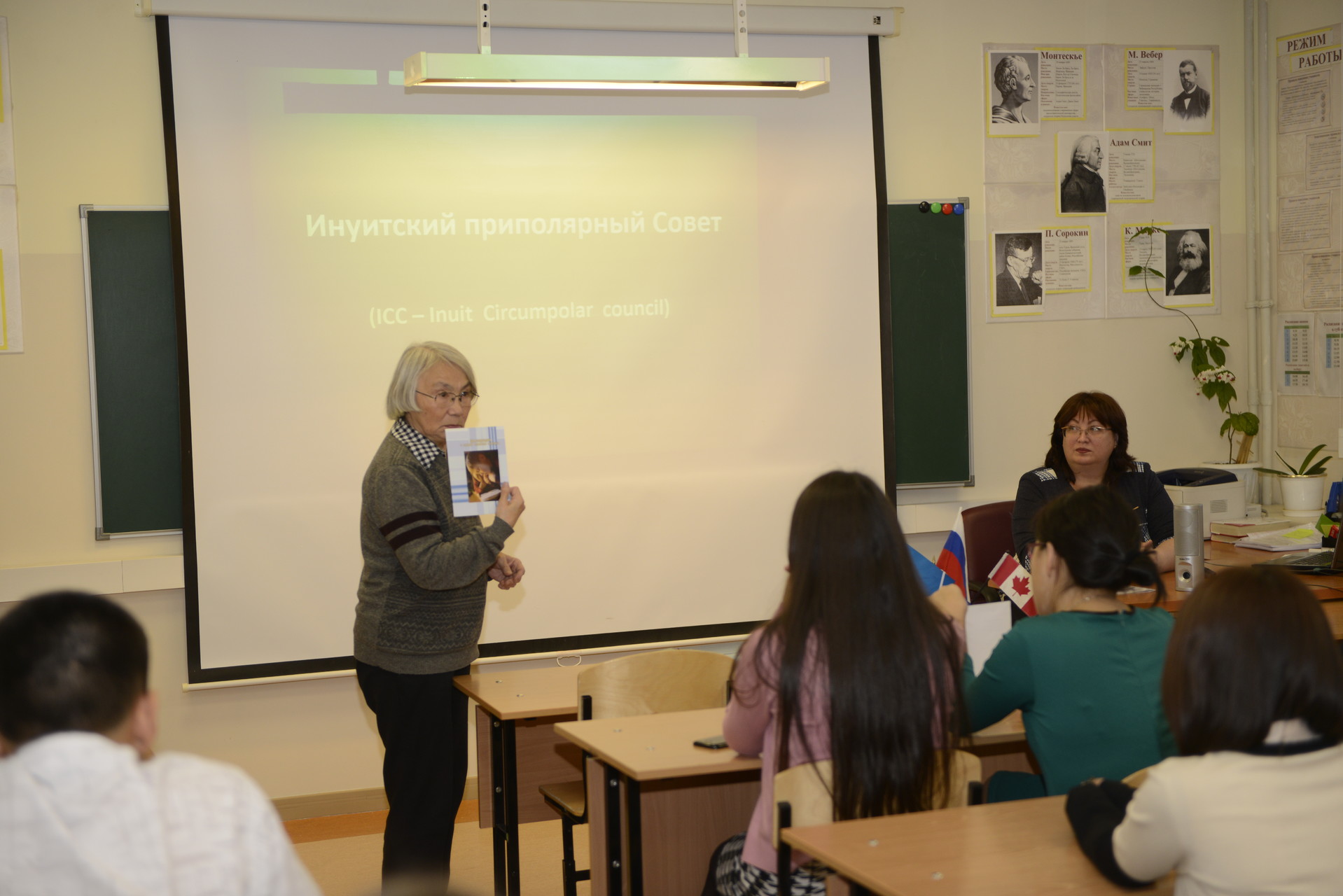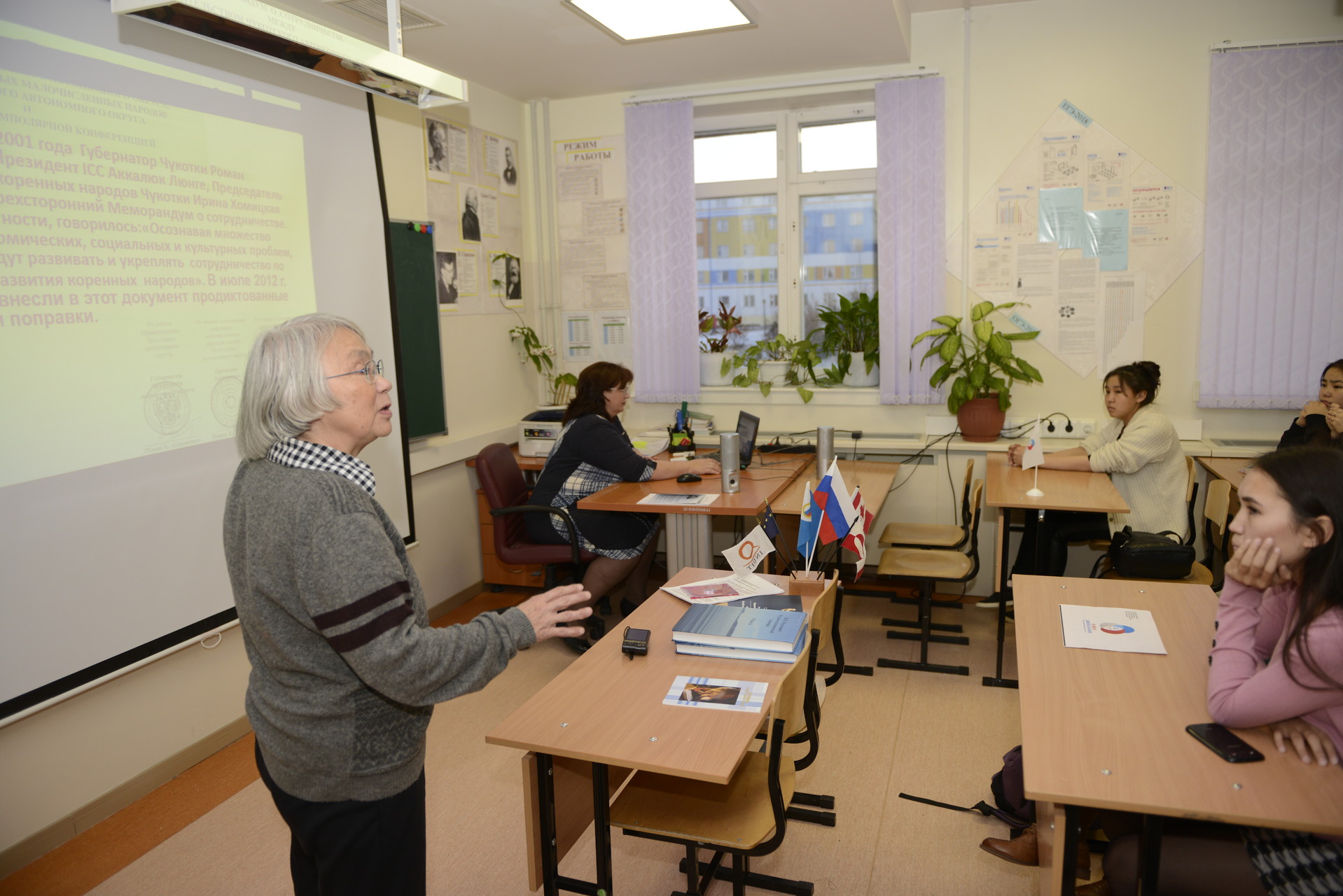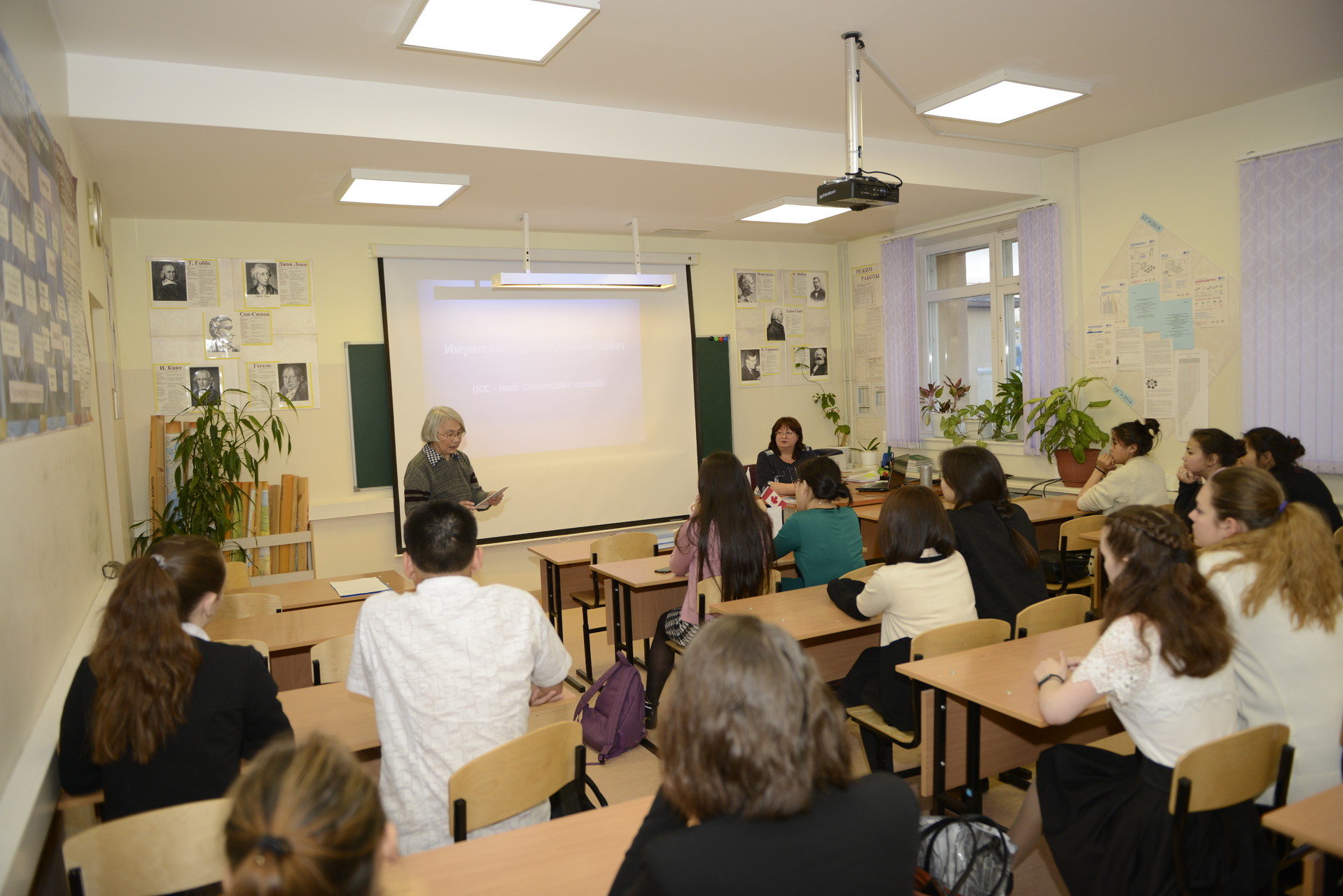 В конце октября лицеисты приняли участие во Всероссийском проекте «Классные встречи», организованном Общероссийской общественно-государственной детско-юношеской организацией «Российское движение школьников». В рамках проекта учащиеся лицея встречались с интересными людьми города. Самыми запоминающимися стали встречи с Ачиргиной Татьяной Юрьевной, журналистом, председателем общественной организации «Инуитский приполярный Совет. Чукотка». Татьяна Юрьевна с использованием видеоматериалом рассказала ребятам о создании и деятельности Совета, представила просветительский проект «Берингиада». Также вниманию лицеистов были предложены материалы по теме «Упа великолепная», «Термины льда» и многие другие. В ходе встреч учащиеся лицея познакомились с эскимосскими сказками, прослушали стихотворения на родном языке эскимосов. Встречи получились яркими, интересными и запоминающимися.