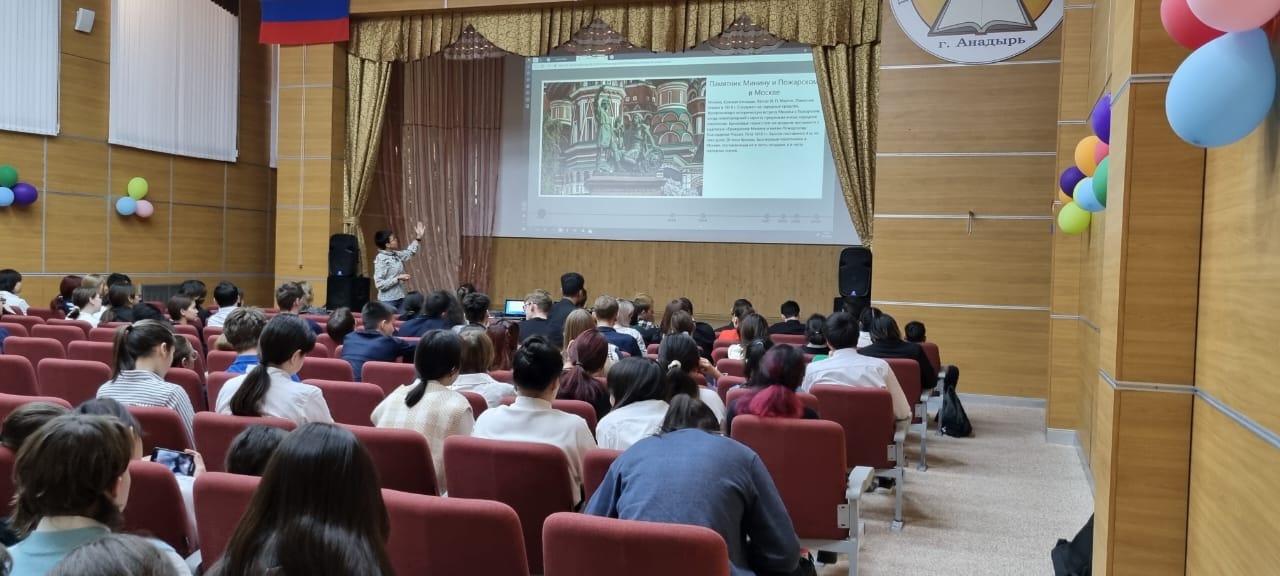 28.10.2022 года в Чукотском окружном профильном лицее среди обучающихся 8-11 классов прошел урок в рамках проекта «Разговоры о важном» на тему «День народного единства». Цель - формирование исторической памяти, чувства сопричастности к традиционным российским ценностям, воспитание патриотизма, осознание себя частью единой многонациональной страны. В процессе встречи лицеистами была выявлена связь с предыдущими уроками проекта. Ребятам были предложены вопросы для актуализации знаний. Основная часть занятия была посвящена истории России и событиям, которые легли в основу государственного праздника – «День народного единства». Подвиг князя Дмитрия Пожарского, земского старосты Кузьмы Минина и Ивана Сусанина – образец жертвенной и самозабвенной любви к Отечеству, а выступление Второго ополчения в 1612 году положило конец Смутному времени. Ребята узнали, что помимо известного всем памятника Минину и Пожарскому на Красной площади в Москве, в разных уголках России благодарными потомками установлены памятники, а также то, что в 2022 году исполнилось 80 лет со дня создания подпольной организации «Молодая гвардия», участники которой были вдохновлены подвигом руководителей Второго ополчения. Сегодня очень важно знать и понимать, что государственный праздник 4 ноября способствует объединению всех национальностей, народностей и этносов в один русский народ ради развития и процветания России.