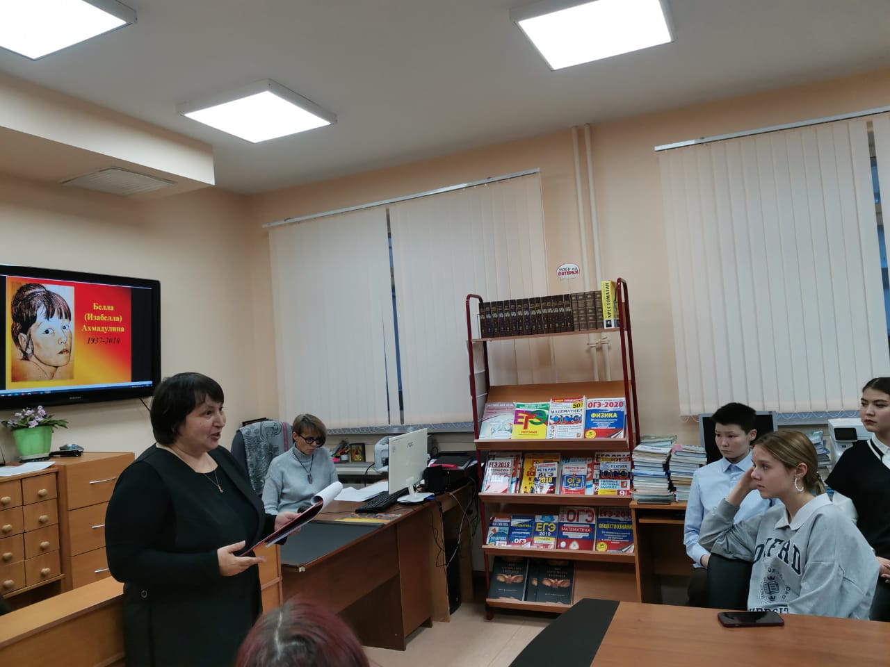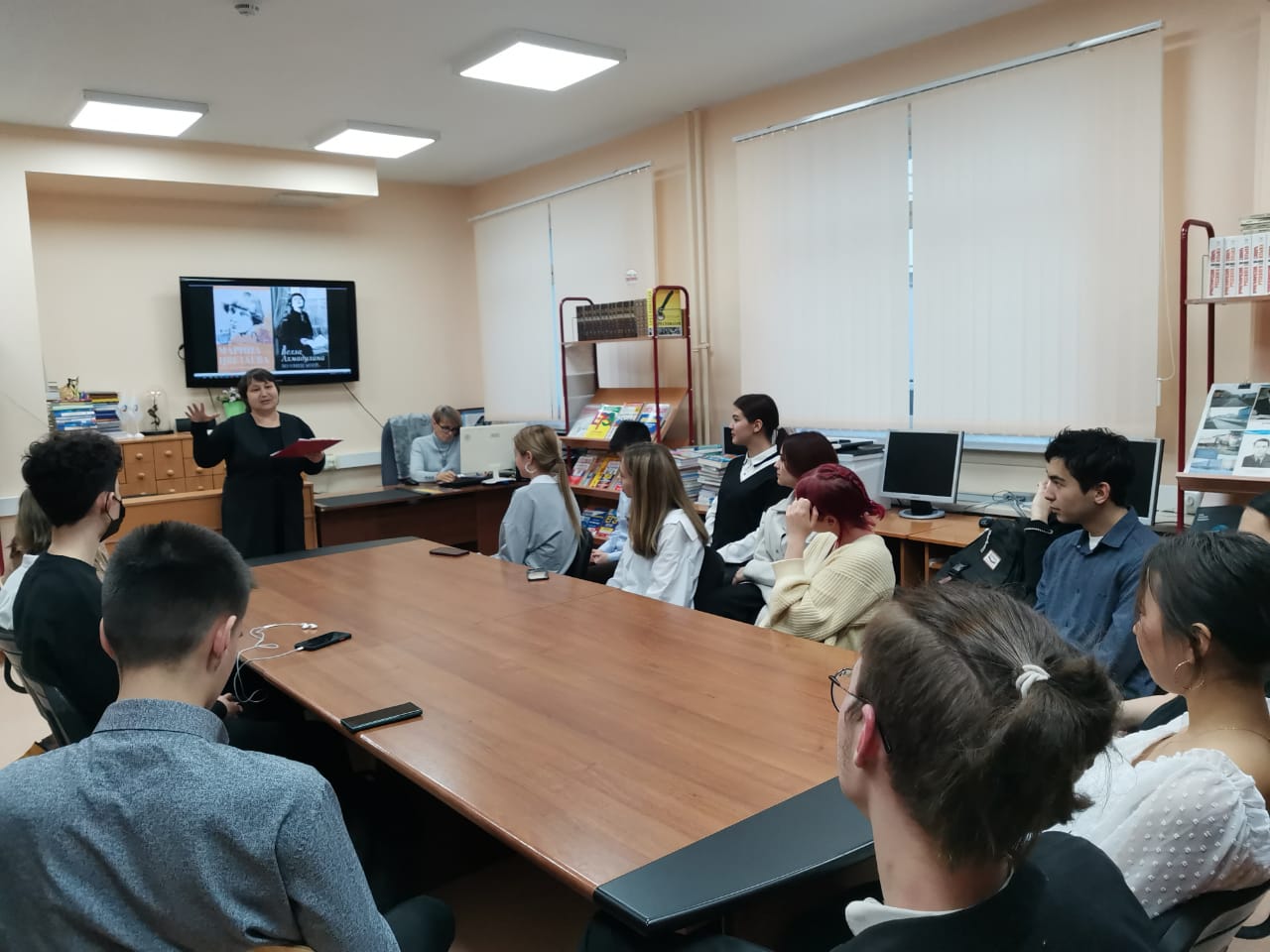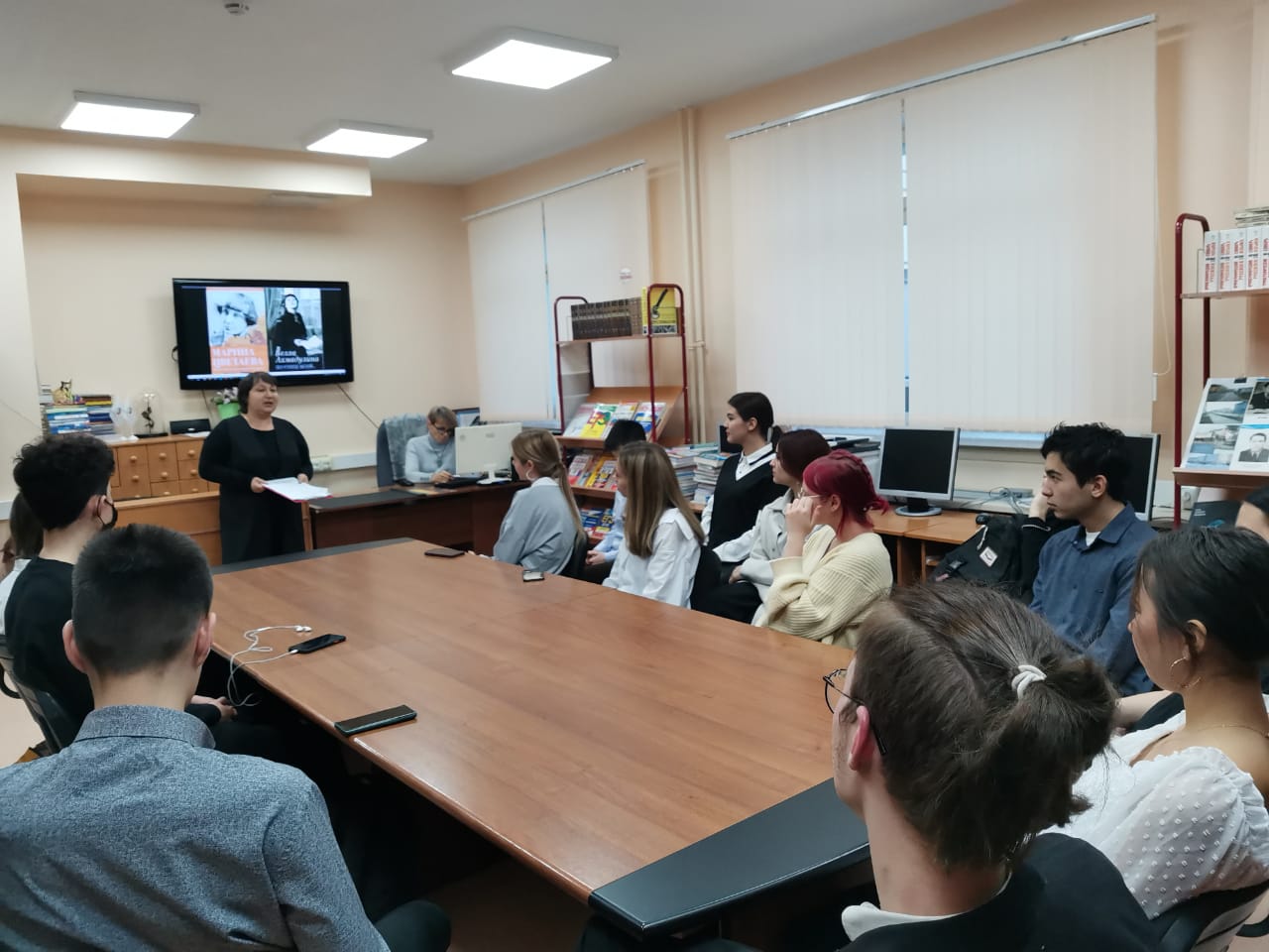 26 октября в литературной гостиной библиотеки Чукотского окружного профильного лицея состоялась встреча учащихся 11  класса гуманитарного и филологического профилей с сотрудниками библиотеки им. Тана –Богораза. Ребята поразмышляли на тему «Что такое поэзия?», выразили свои мысли на вопрос «нужна ли вообще поэзия?», поговорили о творчестве Марины Цветаевой и Беллы Ахмадулиной. Гости встречи представили  лицеистам несколько видеосюжетов со стихами этих известных талантливых поэтесс.  Также  ребята  узнали о творчестве современных поэтов, таких как Аттикус, Вера Полозкова, Рупи Каур.  Литературная гостиная побудила ребят больше узнать о личностях поэтов,  поближе познакомиться с их творчеством, послужила толчком и к новым переживаниям.