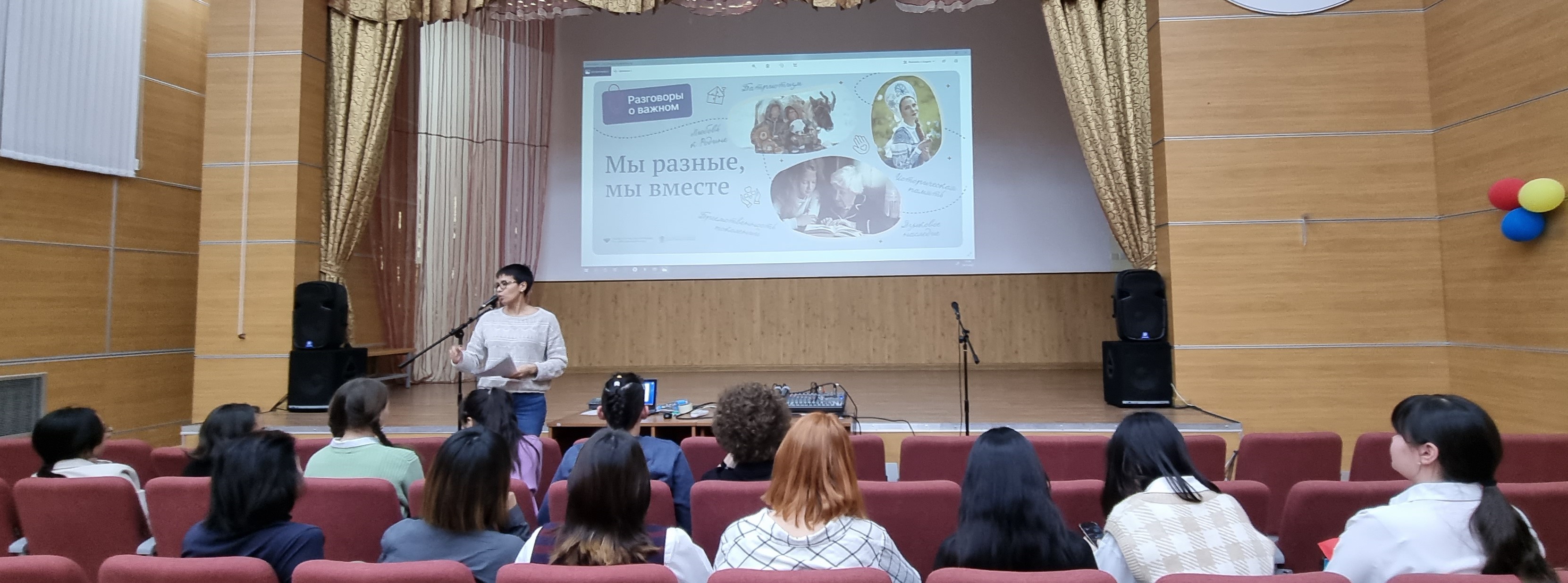 14 ноября 2022 года в Чукотском окружном профильном лицее среди обучающихся 9-х и 10-х классов прошел урок из цикла «Разговоры о важном» на тему «Мы разные, мы вместе». Цель - формирование у обучающихся представления о важности сохранения и развития культурного наследия и языкового разнообразия многонационального народа Российской Федерации, чувства гордости за культуру нашей страны. В ходе занятия был использован видеофрагмент, организованы групповая работа, анализ текстовой и визуальной информации. Стоит отметить, что огромную роль в достижении поставленной цели играет участие ребят в ежегодной Международной просветительской акции «Большой этнографический диктант», целью которого также является формирование у обучающихся представления о важности сохранения и развития культурного наследия и языкового разнообразия многонационального народа Российской Федерации, чувства гордости за культуру нашей страны. Некоторые лицеисты уже не единожды принимали участие в акции. На занятии им было предложено ответить на вопросы «БЭД-2021», что они сделали большим удовольствием. Ребята сошлись во мнении, что культуру, языки народов, населяющих территорию России необходимо беречь, ведь культура – это фундамент духовно-нравственных ценностей, которые прививаются детям.