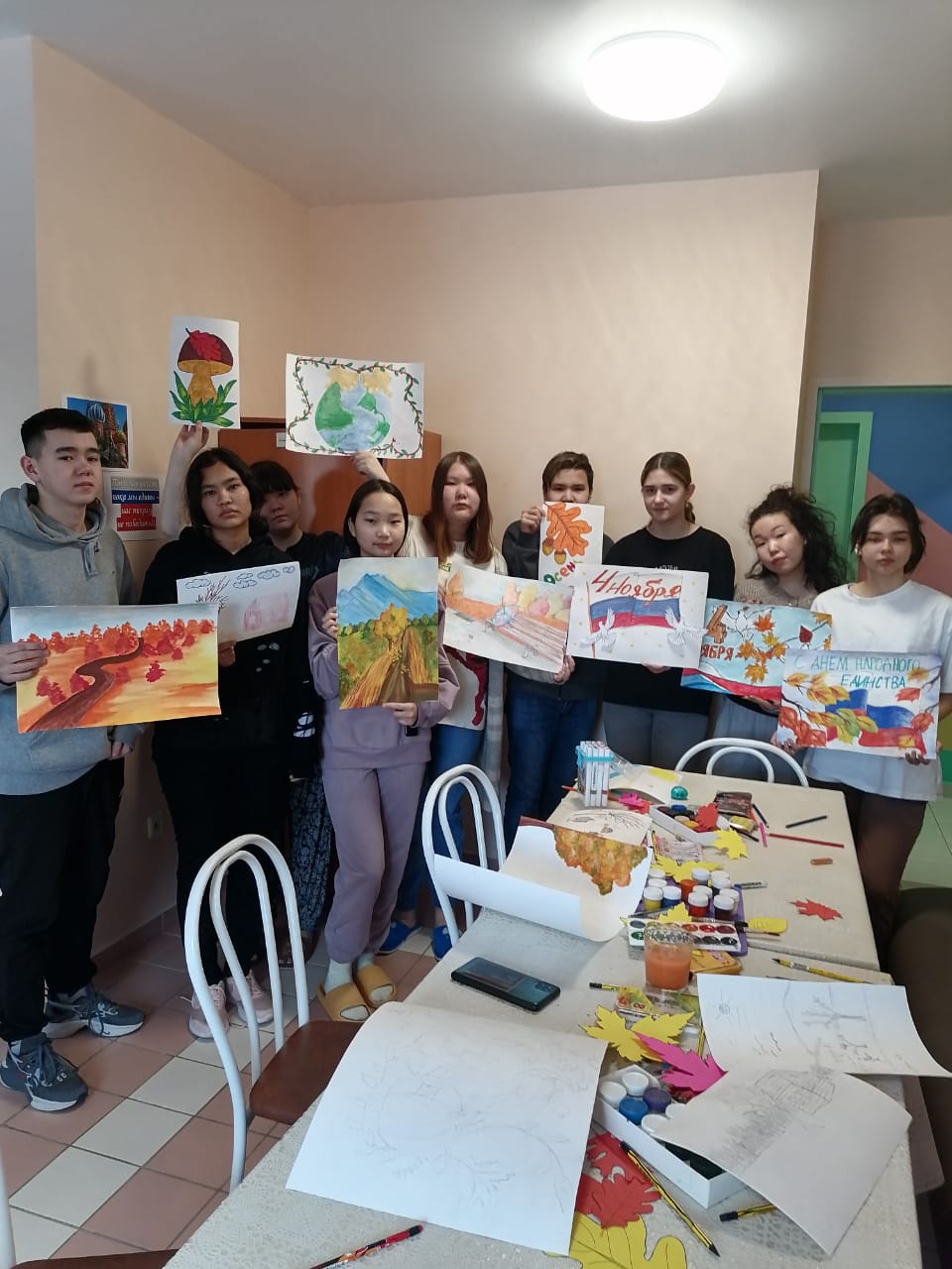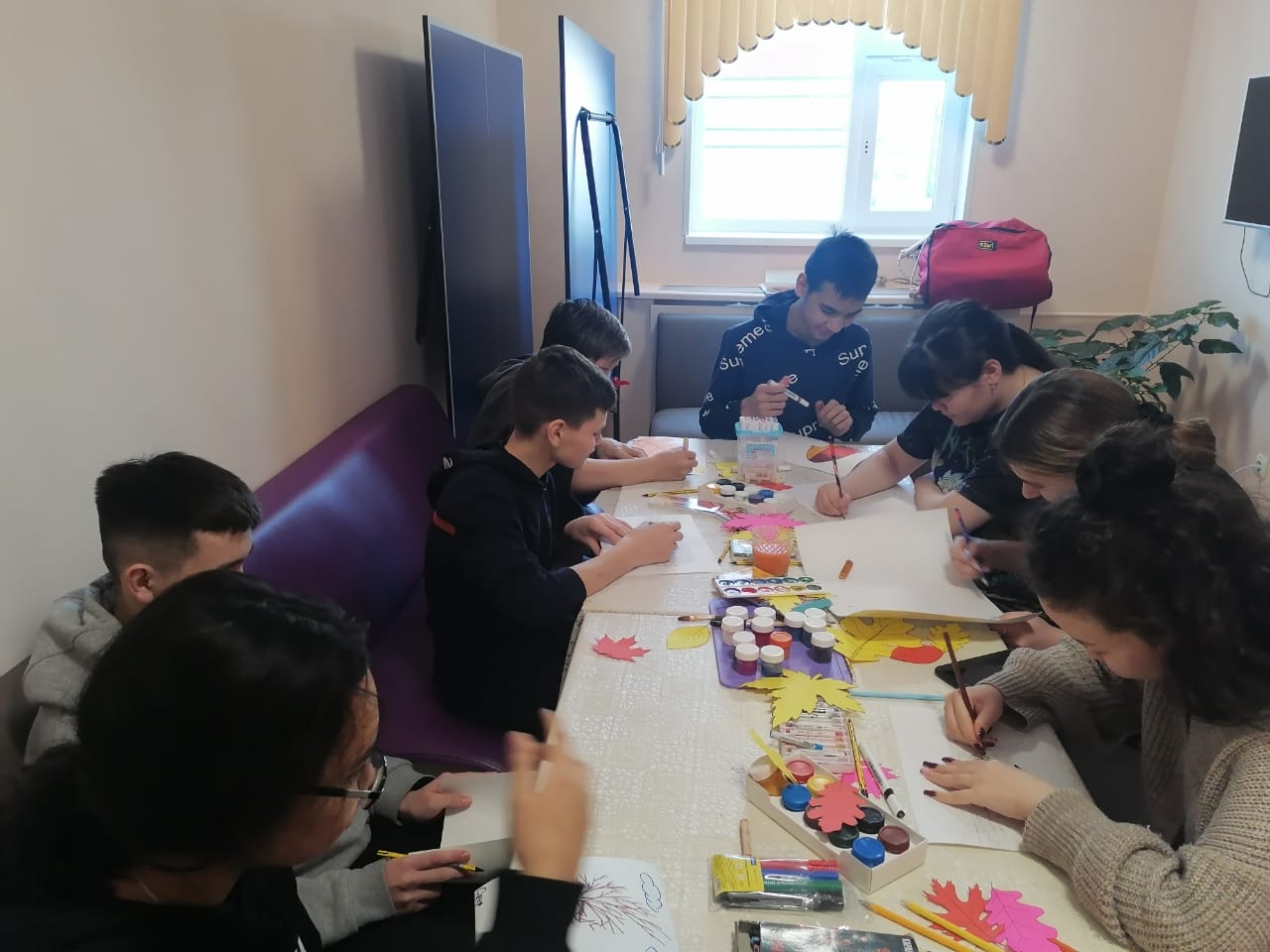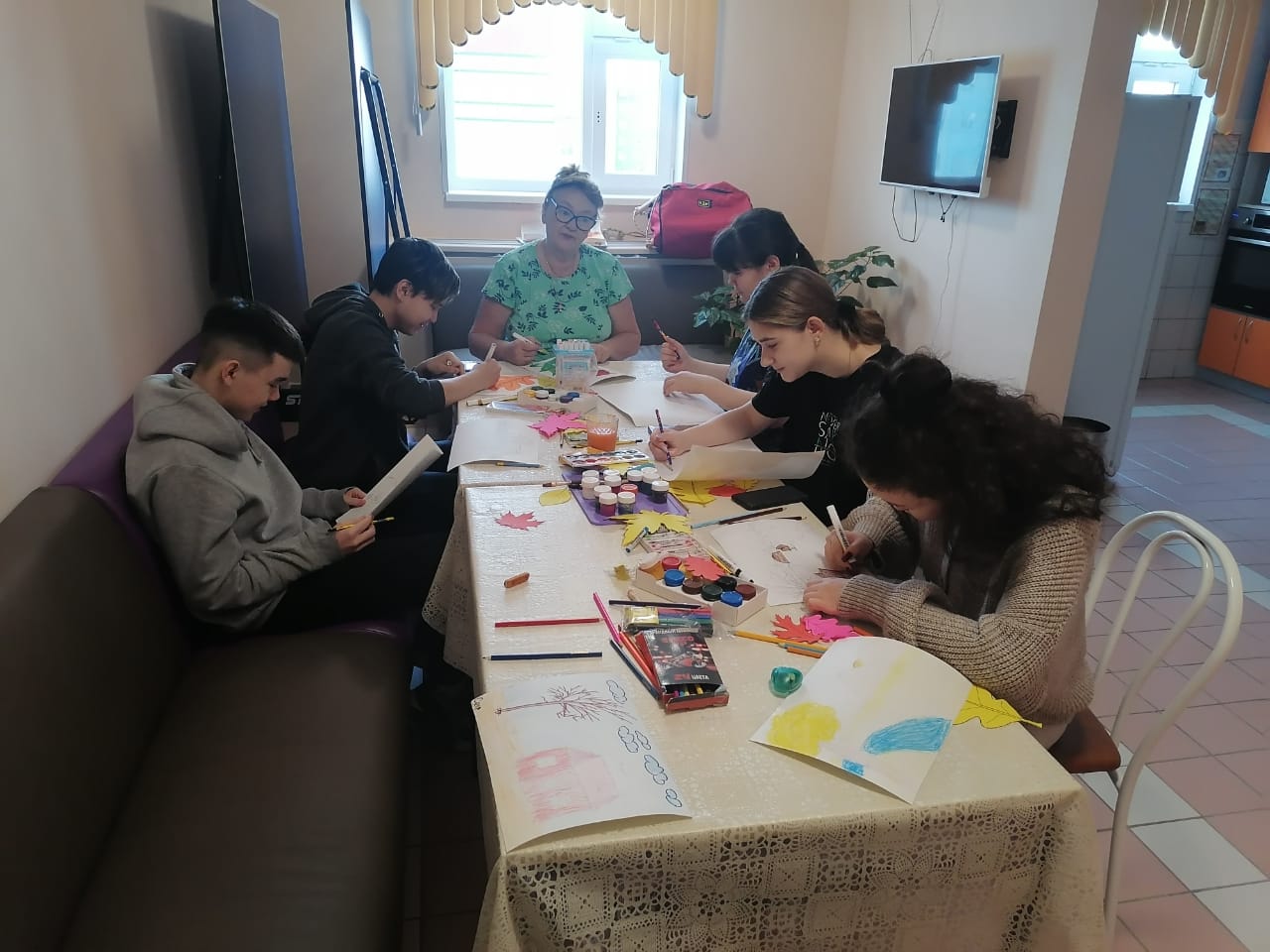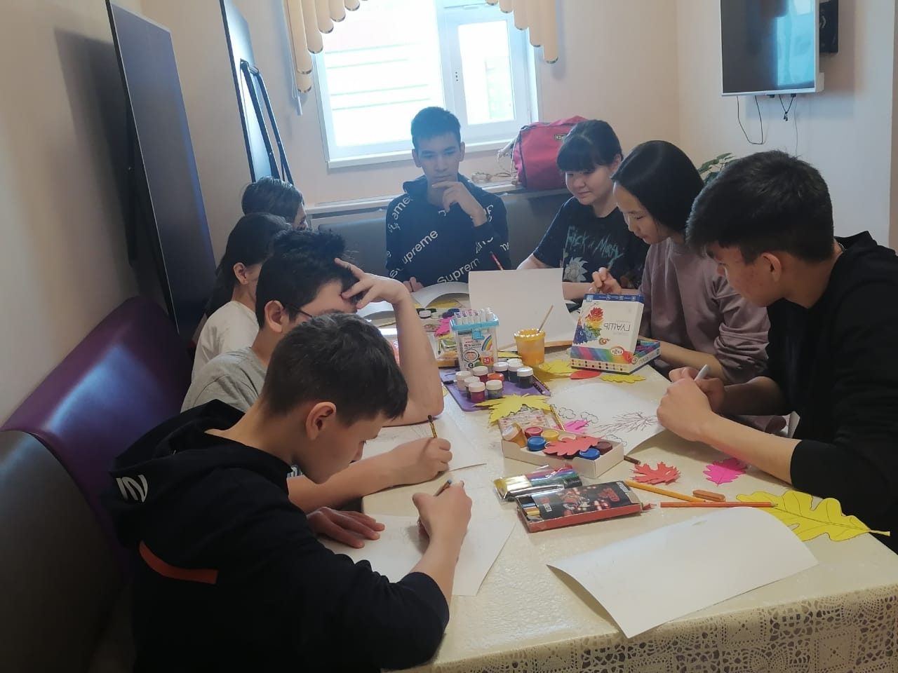 03.11.2022 года воспитанникам интерната лицея была предоставлена возможность поделиться своими осенними эмоциями в красках, карандашах, мелках. Чтобы каждый воспитанник попробовал себя в роли художника, была выбрана не совсем обычная форма проведения творческого мероприятию «Нескучная осень». Рисунки выполнялись в несколько этапов. Первая партия воспитанников карандашом набросала на листе ватмана идею задуманного рисунка. Через полчаса сменились действующие лица и на смену одним, пришли другие ребята, которым представилась возможность выбрать любую начатую работу и продолжить ее. Следующая партия воспитанников завершала рисунки. Воспитанников увлек творческий процесс и рисунки получились красочные, как и сама осень.