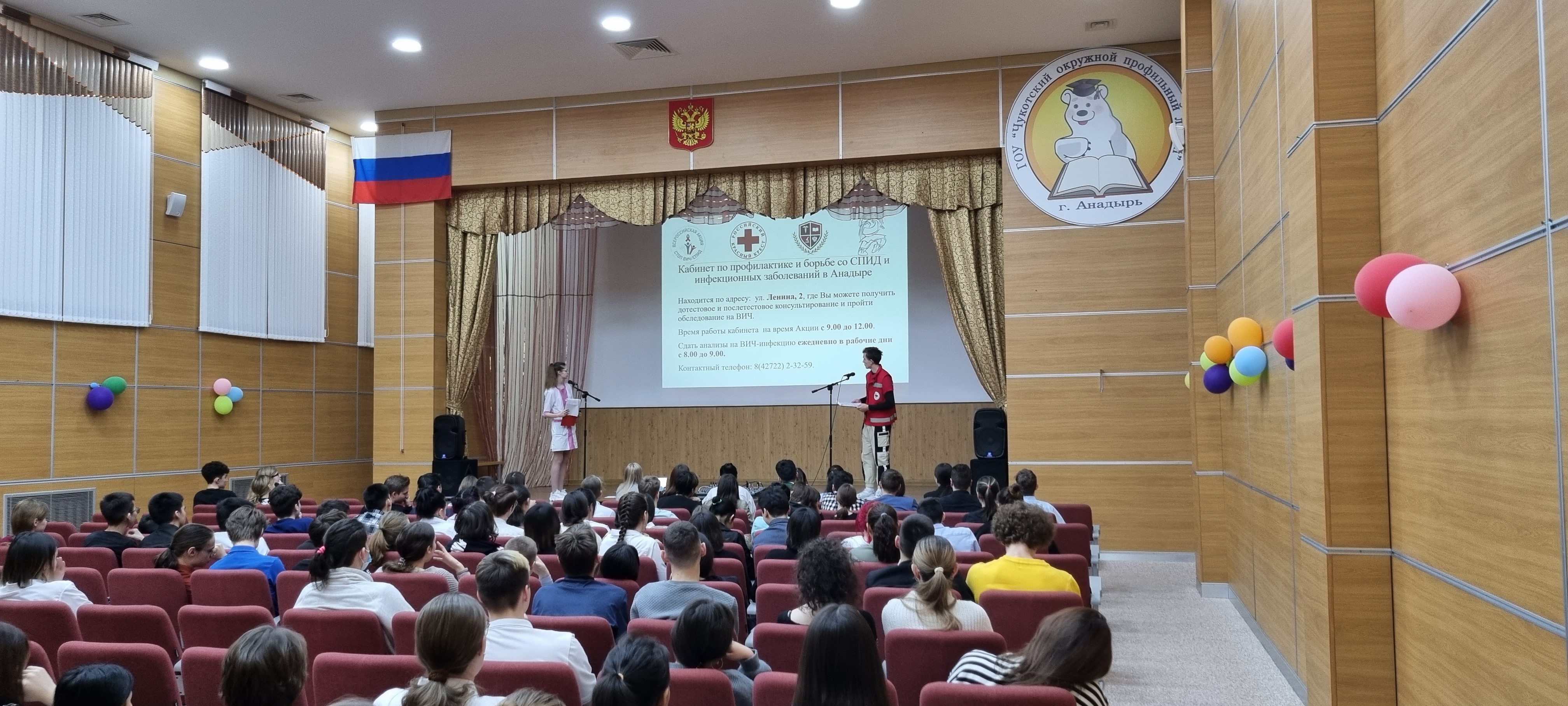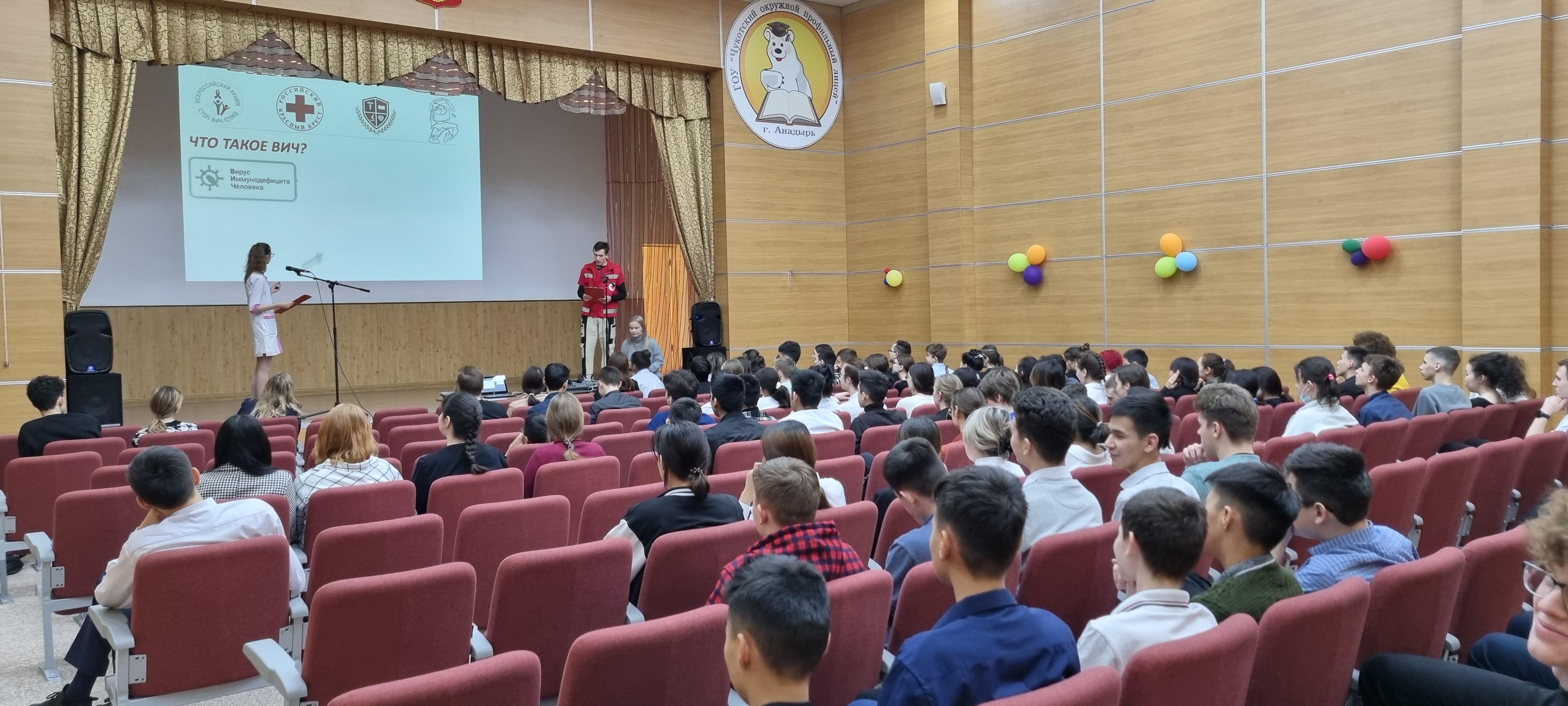 06 декабря 2022 года в актовом зале Чукотского окружного профильного лицея прошла встреча обучающихся 8-11 классов со студентами 2 курса отделения медицины Чукотского многопрофильного колледжа. Мероприятие прошло в рамках акции «Стоп ВИЧ/СПИД!». 01 декабря – Всемирный День борьбы со СПИДом, впервые был провозглашён Всемирной организацией здравоохранения в 1988 году, с 1996 года проводится ЮНЭЙДС. День учрежден с целью повышения осведомлённости об эпидемии СПИДа, вызванной распространением ВИЧ-инфекции, а также как день памяти жертв этого заболевания.