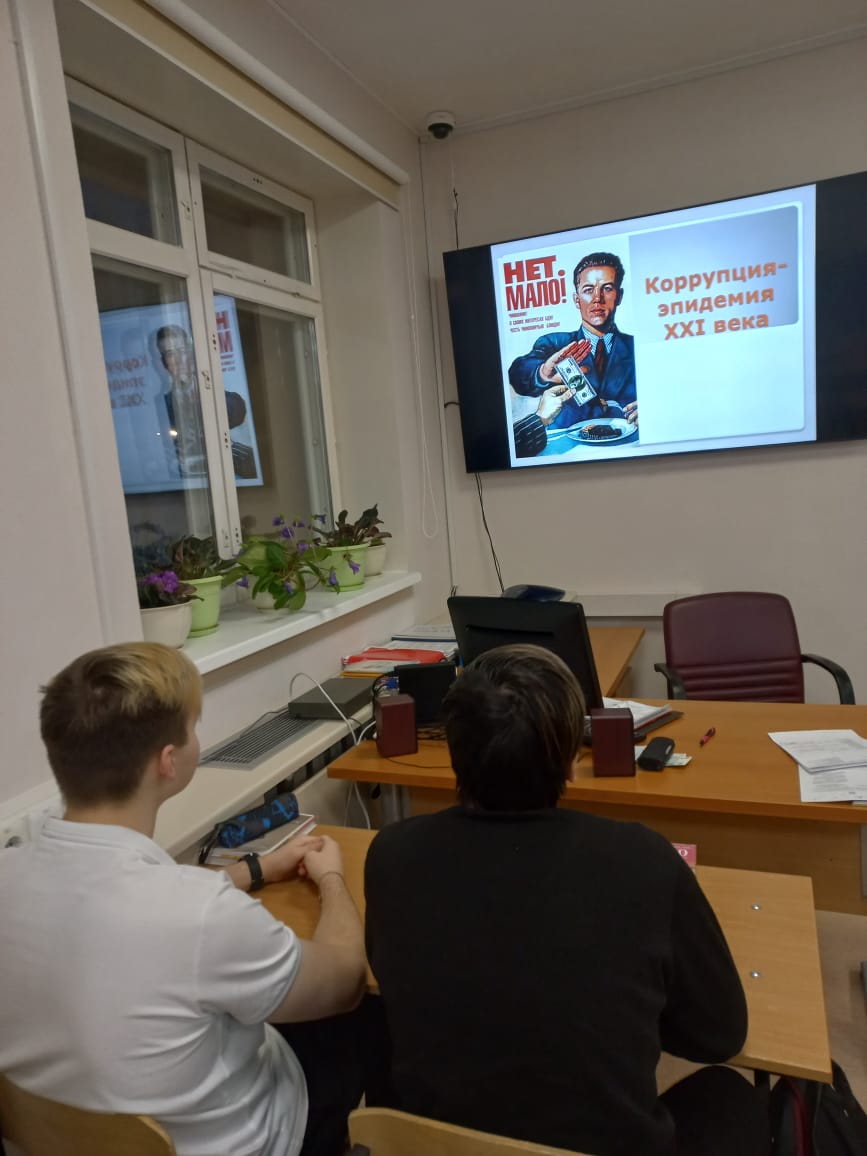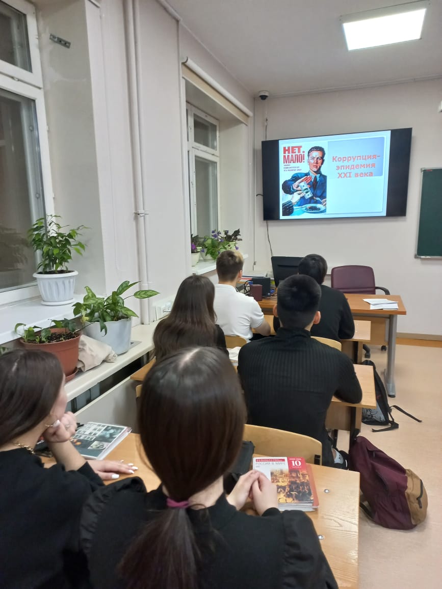 В целях создания условий для воспитания ценностных установок и развития способностей, необходимых для формирования у обучающихся  гражданской позиции в отношении коррупции в Чукотском окружном профильном лицее прошли мероприятия, приуроченные к Международному дню борьбы с коррупцией 09 декабря 2022 года.  Старшеклассники приняли участие в  региональном флешмобе «Мы против коррупции!». В течение всего дня 9 декабря в холле 1 этажа лицея на телеэкране  демонстрировались антикоррупционные ролики. С 1 по 9 декабря классными руководителями проведены классные часы и  беседы по темам борьбы с коррупцией с использованием видеосюжетов и презентационного материала. В библиотеке лицея оформлена выставка и проведена беседа с учащимися на тему «Коррупция  в литературных произведениях русских писателей».  На уроках права, экономики и обществознания в течение недели педагоги акцентировали внимание на антикоррупционном законодательстве, демонстрировали тематические презентации.