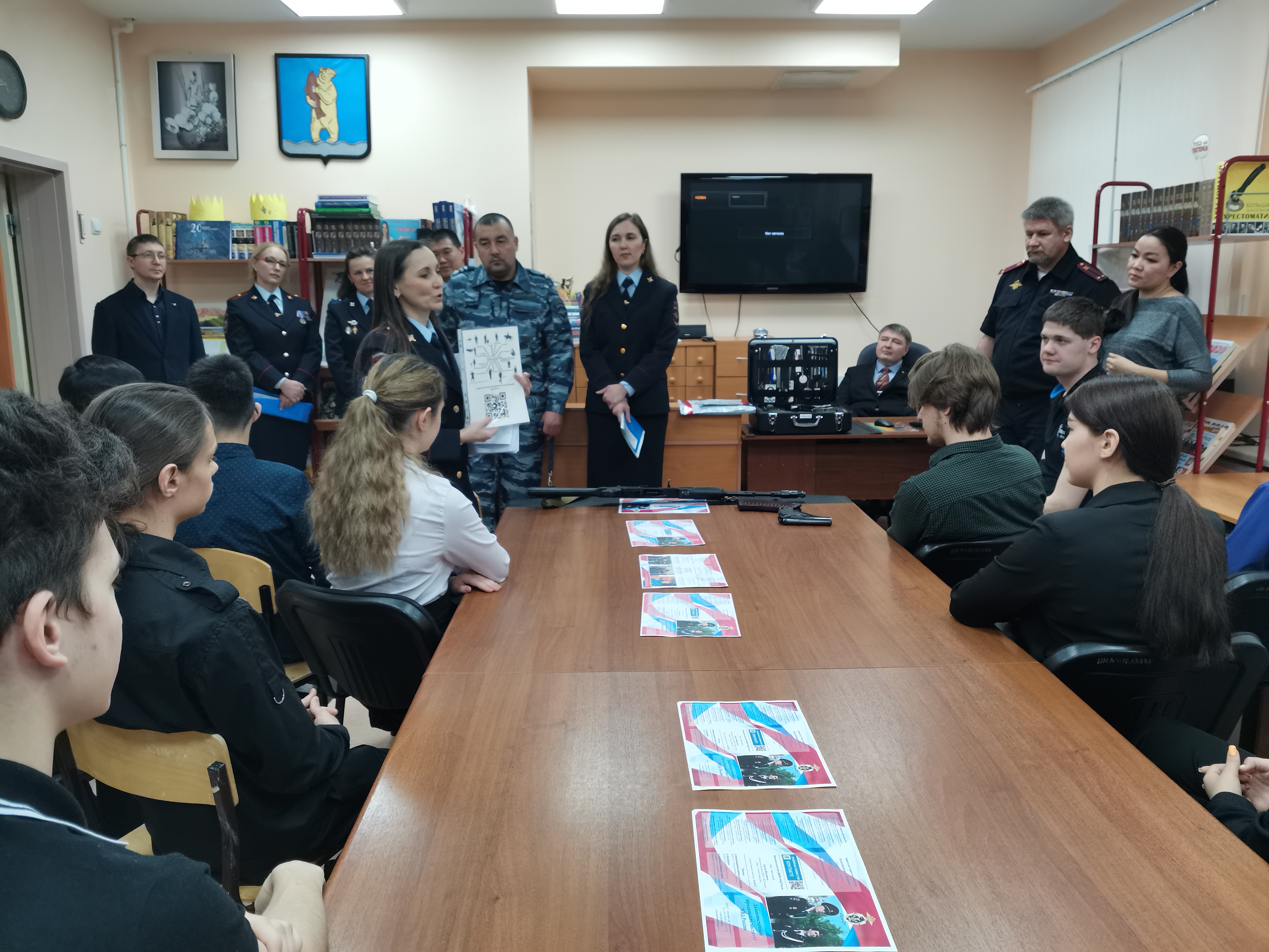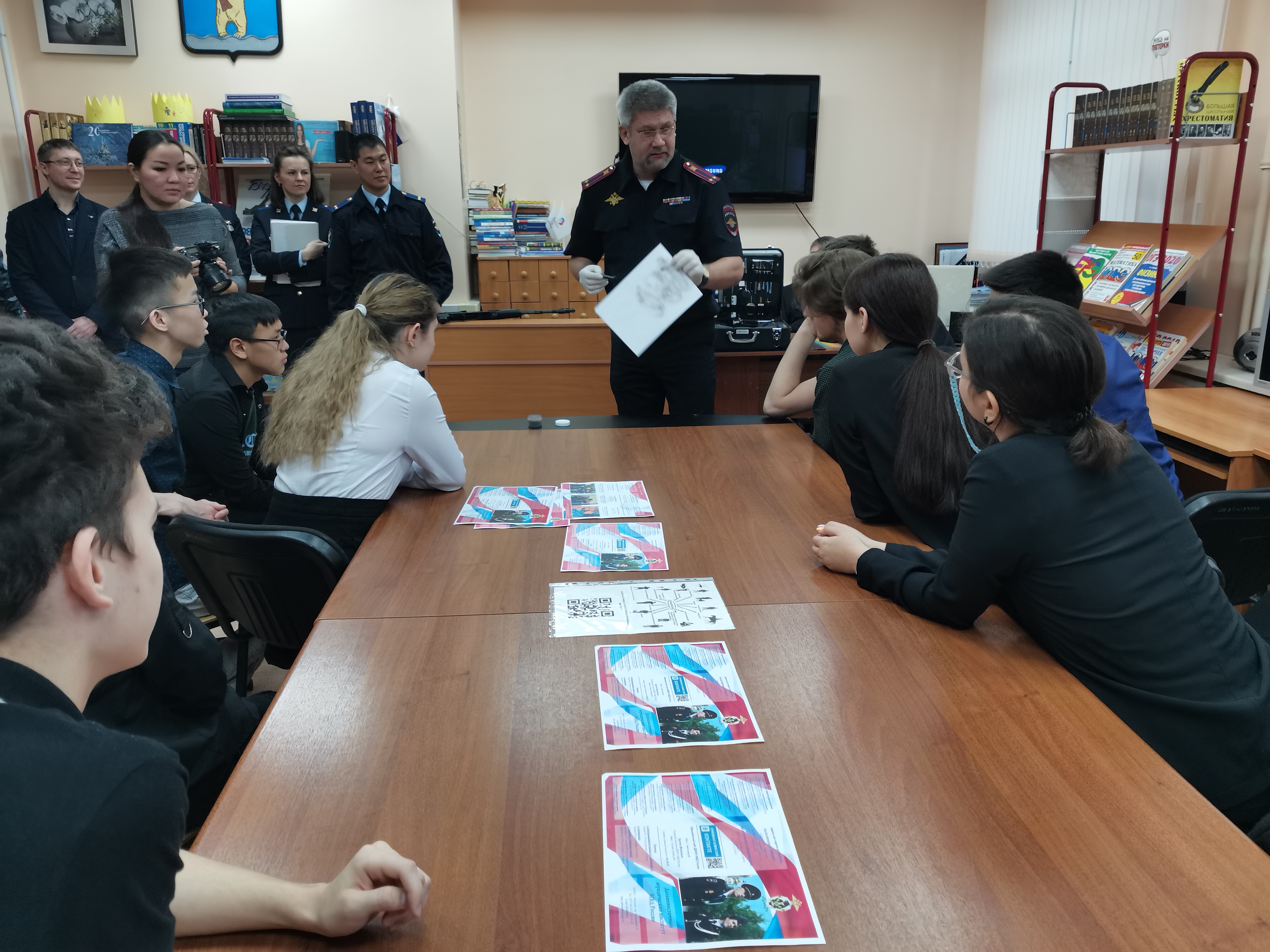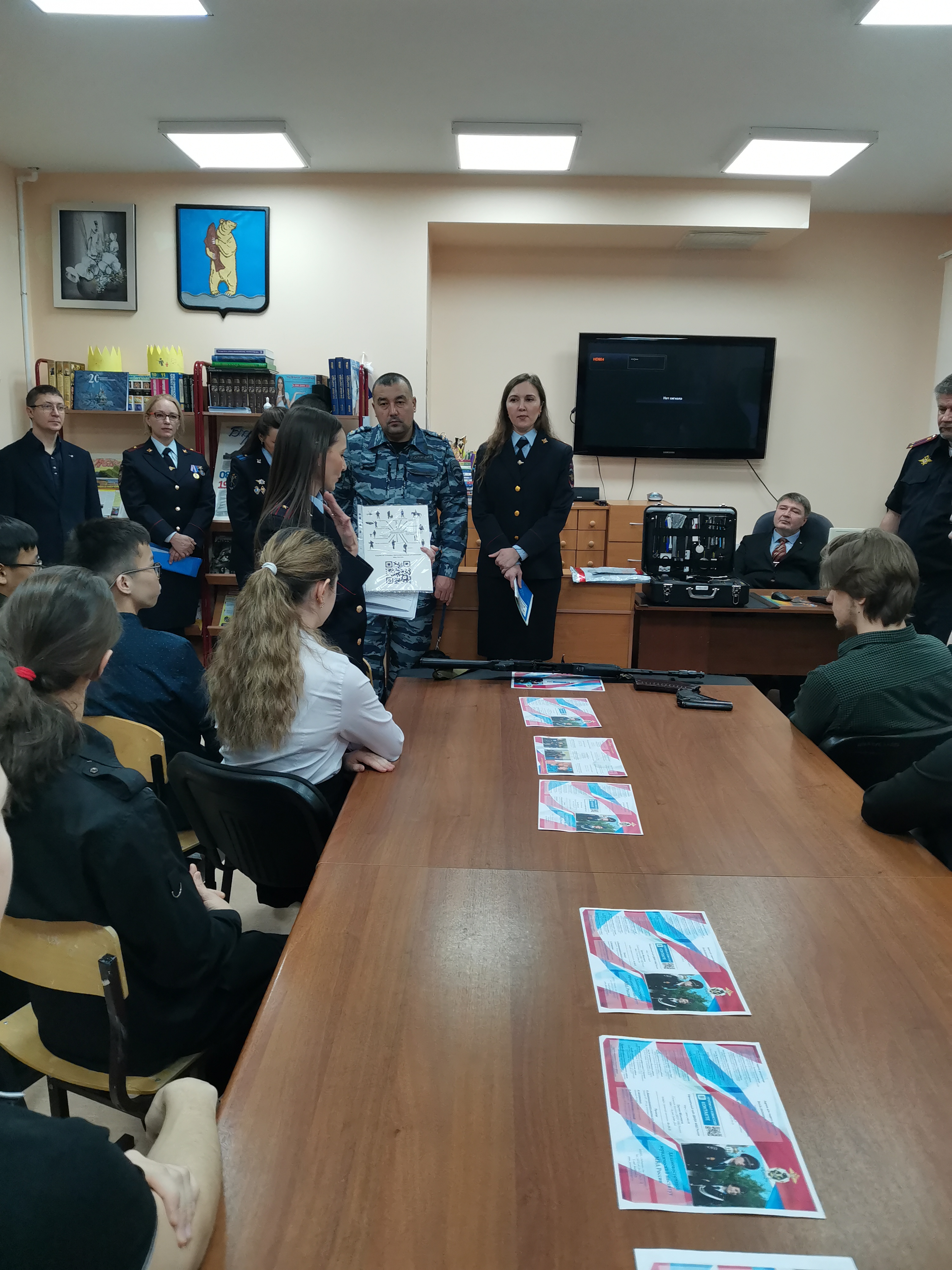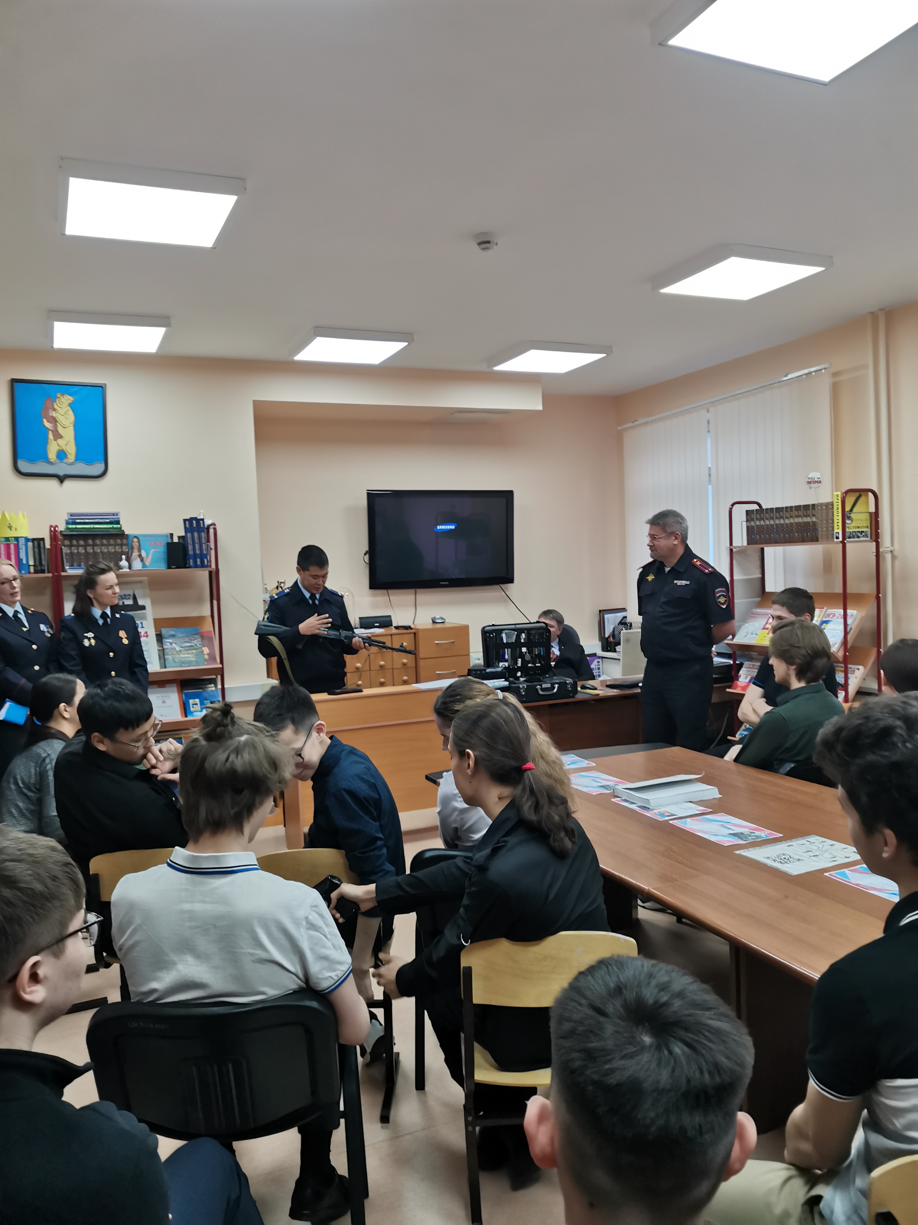Взаимодействие лицея со структурами УМВД Чукотского автономного округа носит регулярный характер. Активно проводится профориентационная и профилактическая работа. 18 и 26 января были организованы встречи с лицеистами, на которых сотрудники окружного УМВД, ветераны органов внутренних дел, общественники выступили перед лицеистами с призывом поступления в ВУЗы системы МВД, рассказали о перспективах, льготах и гарантиях службы в полиции. Для учащихся был продемонстрирован видеоролик о работе полиции Чукотки. С лицеистами пообщались кинолог, эксперт-криминалист, сотрудники следственного отдела, оперативных подразделений, охраны общественного порядка. Ребятам было представлено оружие, состоящее на вооружении в органах внутренних дел, а также наглядно продемонстрированы некоторые виды экспертиз, и даже макет уголовного дела. Встречи прошли в режиме диалога, были информационно насыщены и познавательны.