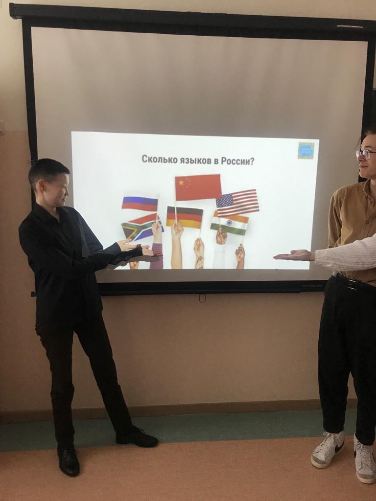 21 февраля ребята различных национальностей рассказали о поэтах и писателях России, и прочитали стихотворения на своем родном языке. На уроках физической культуры были проведены мини-эстафеты с элементами национальных видов спорта и северного многоборья. В холле 1 этажа демонстрировались документальные фильмы о Чукотке, а в библиотеке организована книжная выставка, посвященная авторам произведений на родных языках.