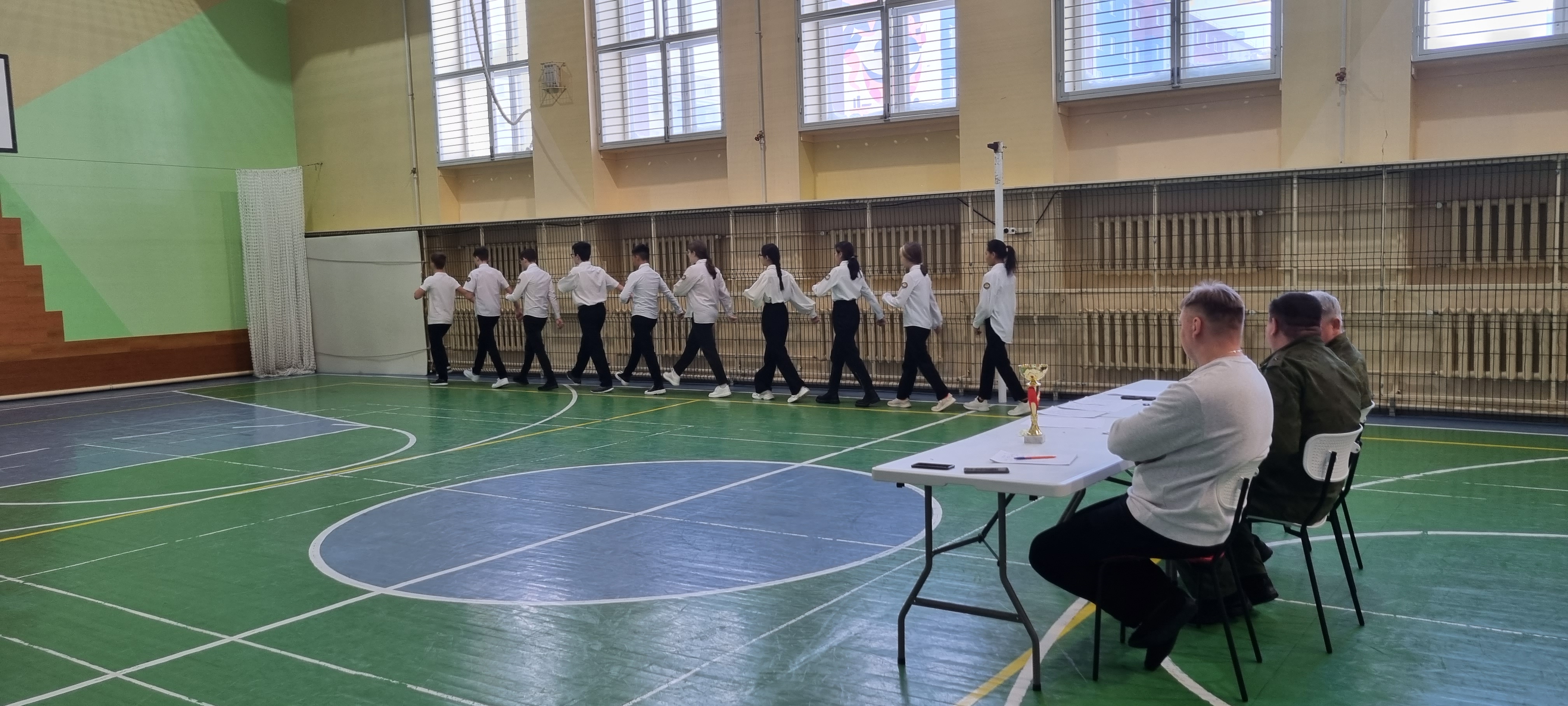 В смотре приняли участие обучающиеся 8-11 классов. После процедуры жеребьевки отряды приступили к выступлению по строевой подготовке, которое оценивалось по следующим показателям: дисциплина строя, внешний вид, выполнение перестроений и поворотов, строевой шаг, исполнение строевой песни, действия командира.