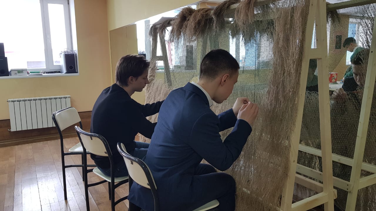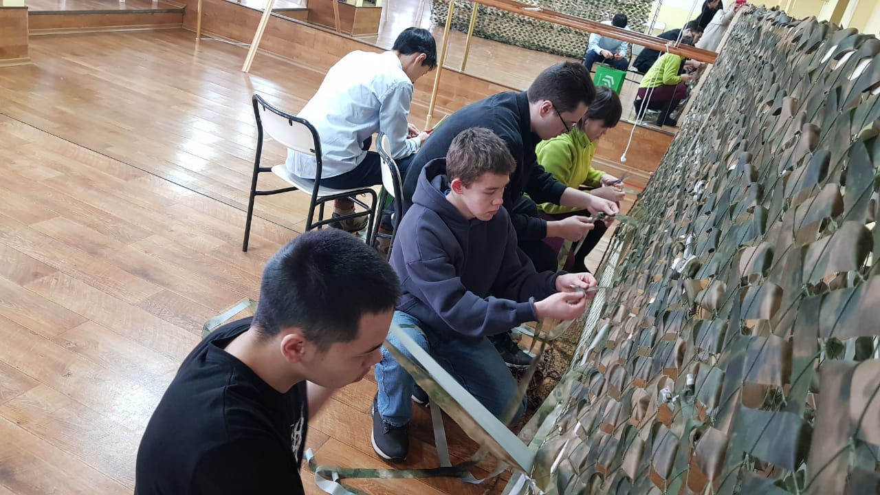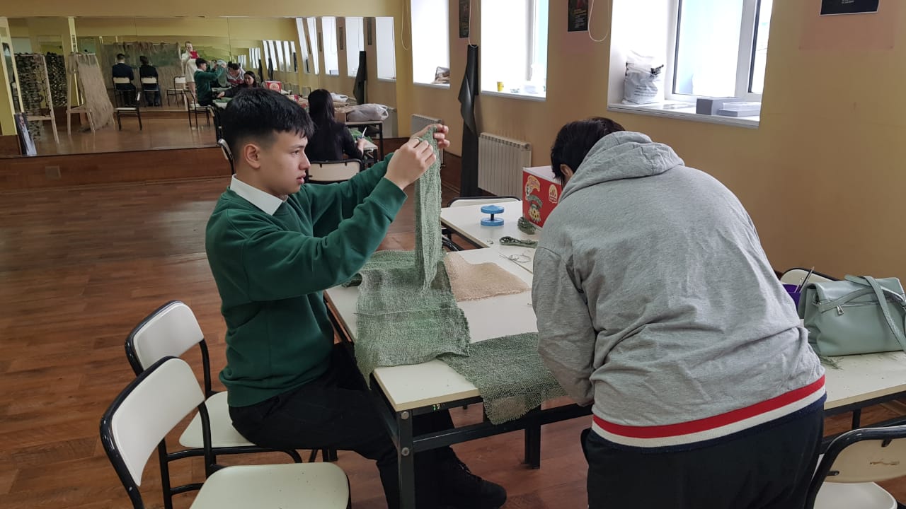 13 марта 2023 года обучающиеся 10Б класса Чукотского окружного профильного лицея в рамках патриотической акции «ТеплоZOV» освоили плетение маскировочных сетей в технике «Козлик», а также изготовили накидку-укрытие «Кикимора».