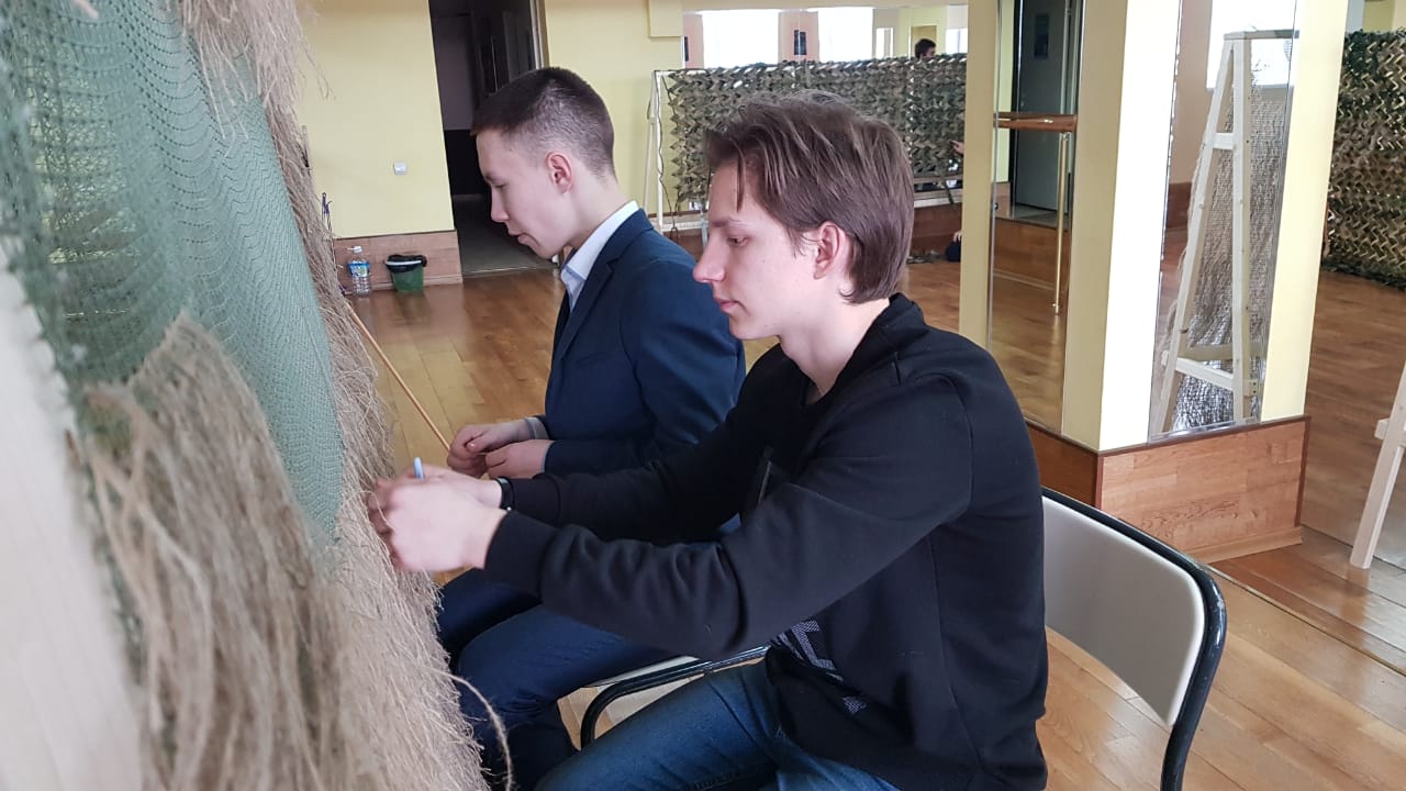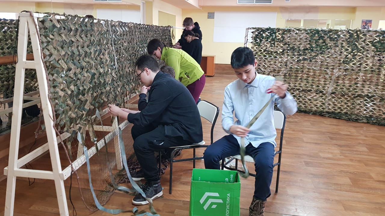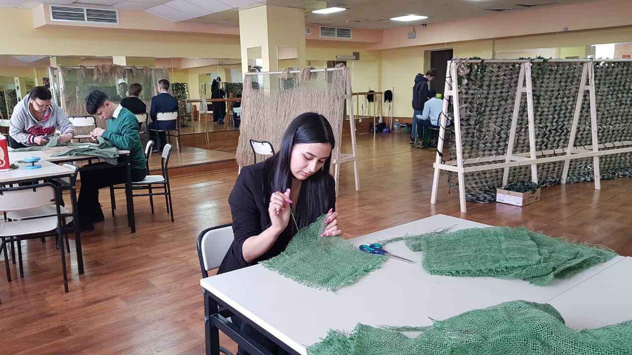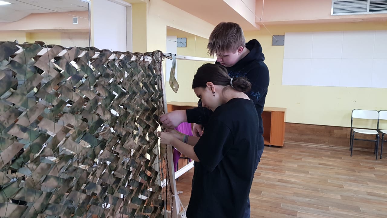 13 марта 2023 года обучающиеся 10Б класса Чукотского окружного профильного лицея в рамках патриотической акции «ТеплоZOV» освоили плетение маскировочных сетей в технике «Козлик», а также изготовили накидку-укрытие «Кикимора».