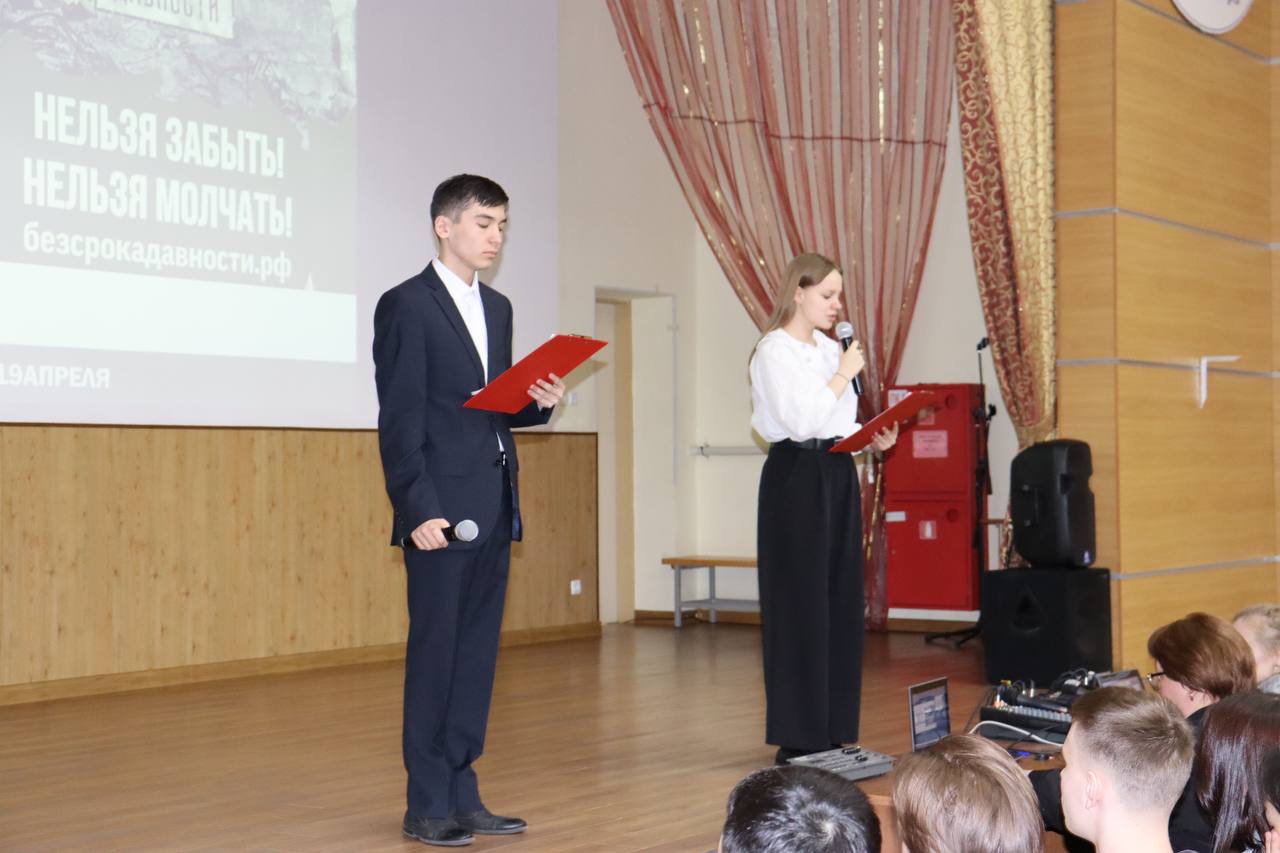 Сохранить историческую правду об этих преступлениях, знать героическое прошлое своей страны очень важно для всех, особенно для молодёжи. Ведущие мероприятия в очередной раз говорили о понятиях «нацизм», «фашизм», «геноцид», представляли факты и хронику преступлений нацистов в отношении мирных жителей. Этого нельзя забыть. И этого нельзя простить! У таких действий против человечества и мира нет срока и места давности.
