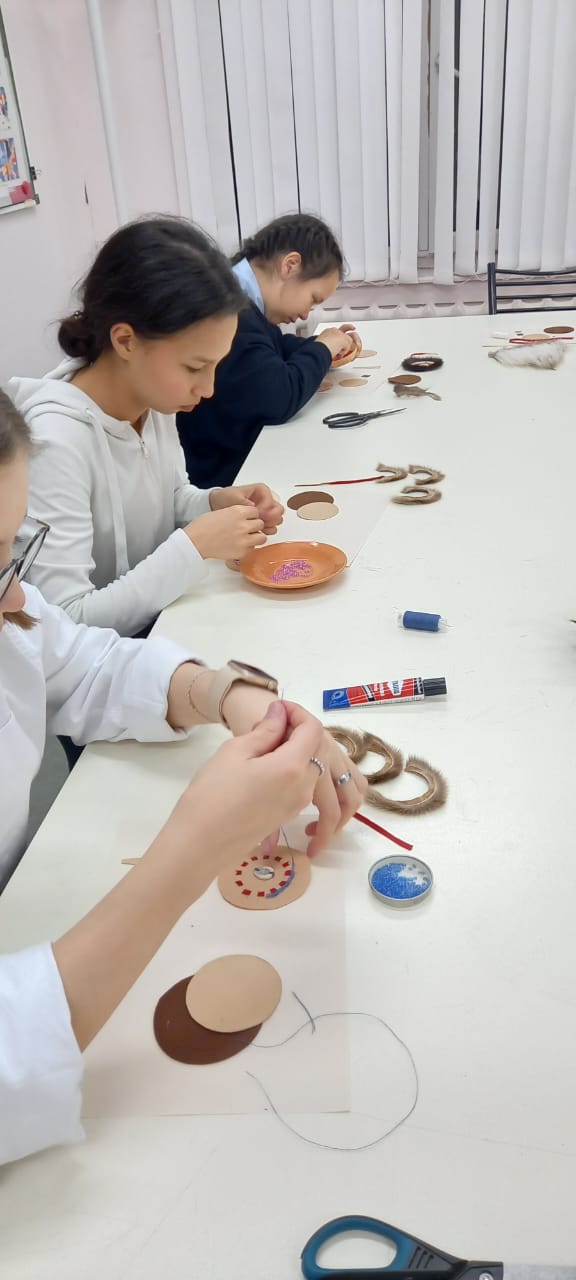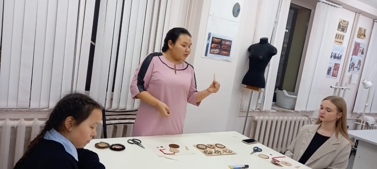 В этот раз занятие было посвящено технологии исполнения декоративно-прикладного и народного искусства. Наставником для наших девушек выступила Нелля Михайловна Омрынто.