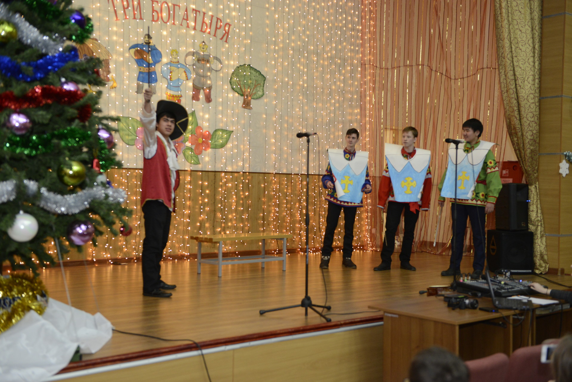 В канун Нового года, 27 декабря в актовом зале нашего лицея проходило праздничное новогоднее мероприятие - театрализованное представление «Три Богатыря», повествующее о невероятных приключениях героев, хорошо знакомых зрителям по сказкам, былинам и даже неимоверно популярным романам Дюма. Для зрителей было неожиданно и интересно наблюдать за происходящим развитием событий, которые ожидали наших героев. Много было испытаний для наших героев, но как всегда в сказке победило добро, а спасла всех искренняя любовь. Новогоднее настроение было на высшем уровне, зрители тёплыми и радушными аплодисментами отблагодарили всех артистов!