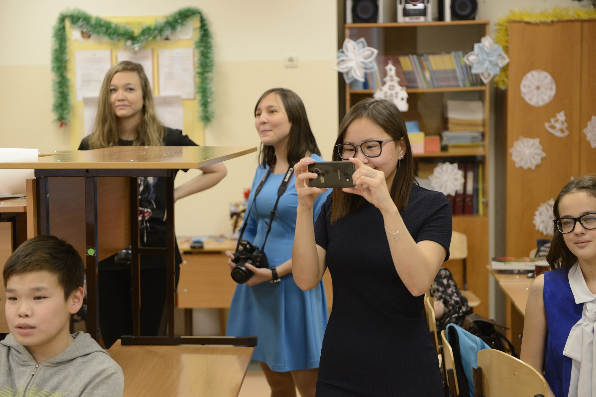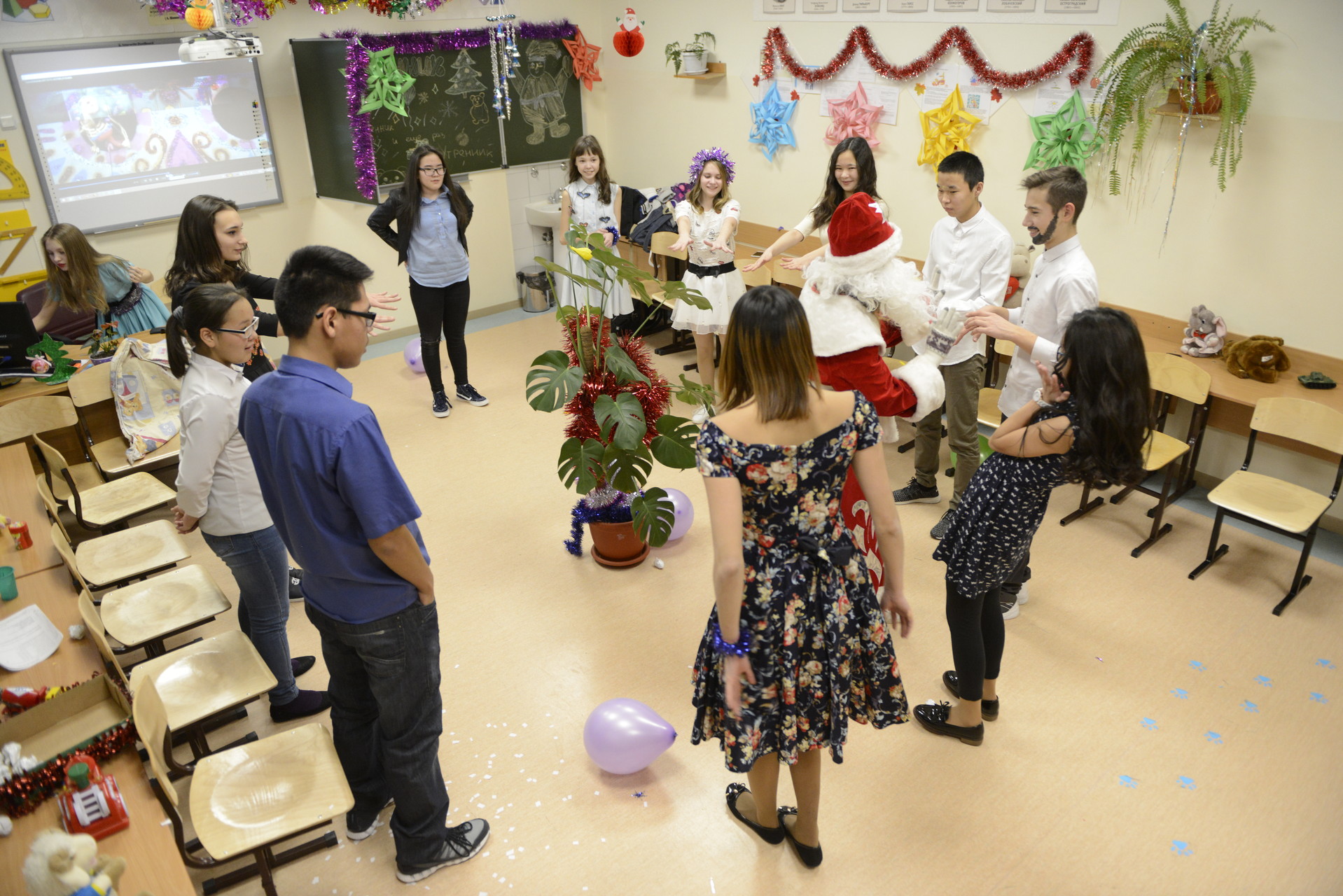 После сказочного представления наших лицеистов, педагогов и гостей поздравили Дед Мороз и Снегурочка. Далее, уже по сложившейся традиции, все отправились путешествовать по станциям, где их ожидали множество различных интересных конкурсов и увлекательных игр.