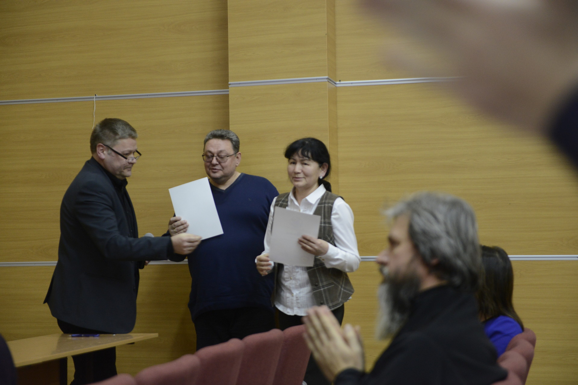 Члены жюри: Панарультына Надежда Михайловна, заведующая отделом методического сопровождения учреждений культуры Чукотского автономного округа Государственного автономного учреждения дополнительного профессионального образования Чукотского автономного округа «Чукотский институт развития образования и повышения квалификации»; Отец Максим, помощник управляющего Анадырской и Чукотской Епархией