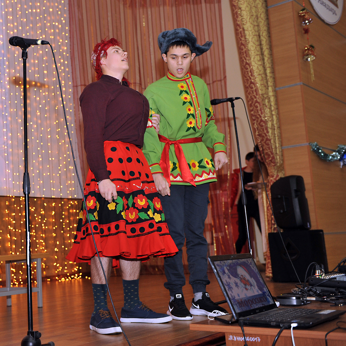 В канун Нового 2019 года, 28 декабря, в актовом зале нашего лицея проходило праздничное новогоднее мероприятие – очередное театрализованное представление по мотивам русской народной сказки «Морозко». Старая любимая сказка на новый лад, повествующая о невероятных приключениях героев, уже хорошо знакомых зрителям: это и Баба-Яга, Злобная Мачеха, Старик отец, падчерица Настенька и сам Морозко. Но всё же, это современное прочтение старой сказки. В представлении этой истории много лет назад великолепно экранизированной режиссером Александром Роу добавились новые сюжетные коллизии и персонажи. В новой сказке появляется суженый Настеньки - Иван-царевич, которого с невероятным усердием пытается женить его отец – Царь. Для этого при дворце устраиваются смотрины всевозможных заморских невест, среди которых представительницы Индии и даже Африки. Но Царевичу ни одна из них не приходится по душе. Только Настенька очаровывает Ивана своей красотой и простотой. Но «самый страшный Суд» в лице Злобной Мачехи приговаривает Настю к исправительным работам по дому, а точнее к ремонту. Где на помощь приходят современные герои Джамшут и Равшан. На этом не прекращаются испытания для бедной девушки. Мачеха и старшая сестра Варенька-душенька выгоняют её из дома в морозный лес…