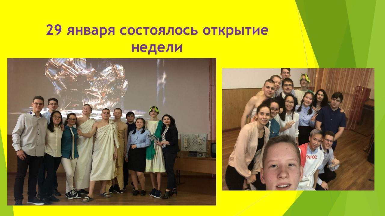 Учениками лицея было подготовлено интересное театрализованное открытие предметной недели под руководством Гаджиметовой Дианы Фекретовны. Благодарим Бекух Рустама , Беевоу Алину, Зубко Сергея, Калянкау Елизавету, Маляренко Александра, Маляренко Алексея, Мироновоу Екатерину, Рубцова Илью, Созыкина Артема, Уяганского Артема, Фазриева Рината, Принцева Владислава.