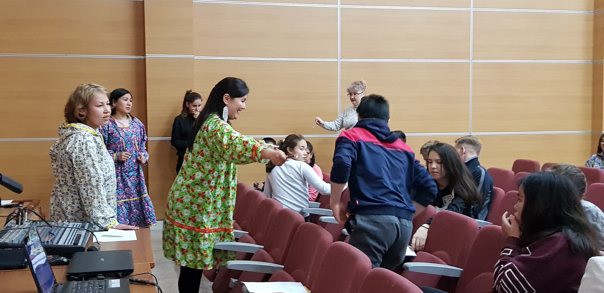 16 августа и 19 августа в «Чукотском окружном профильном лицее» прошла встреча участников летнего окружного образовательного форума школьников «Малые умники и умницы» - 2019 с сотрудниками Управления по делам коренных малочисленных народов Чукотки. Они рассказали ребятам о юбилейном годе, который Резолюцией Генеральной Ассамблеи ООН 2019 год был объявлен Международным годом языков коренных народов. Одна из ключевых целей мероприятий, которые будут проводится, — способствовать сохранению языков коренных народов Севера. С большим интересом ребята участвовали в интерактивной игре на знание родных языков, рассказали о родных местах, откуда они приехали, прошли веселые соревнования по национальным видам спорта. Запомнился ребятам мастер-класс по обучению ребят чукотскому танцу «Берингов мост», который символизирует дружбу не только между народами, но и между Россией и Аляской. Череда мероприятий завершилась душевным чаепитием, которое организовали для ребят сотрудницы Управления по делам коренных малочисленных народов Чукотки. Эти встречи дали ребятам возможность рассказать о своих корнях, почувствовать гордость за свой язык.