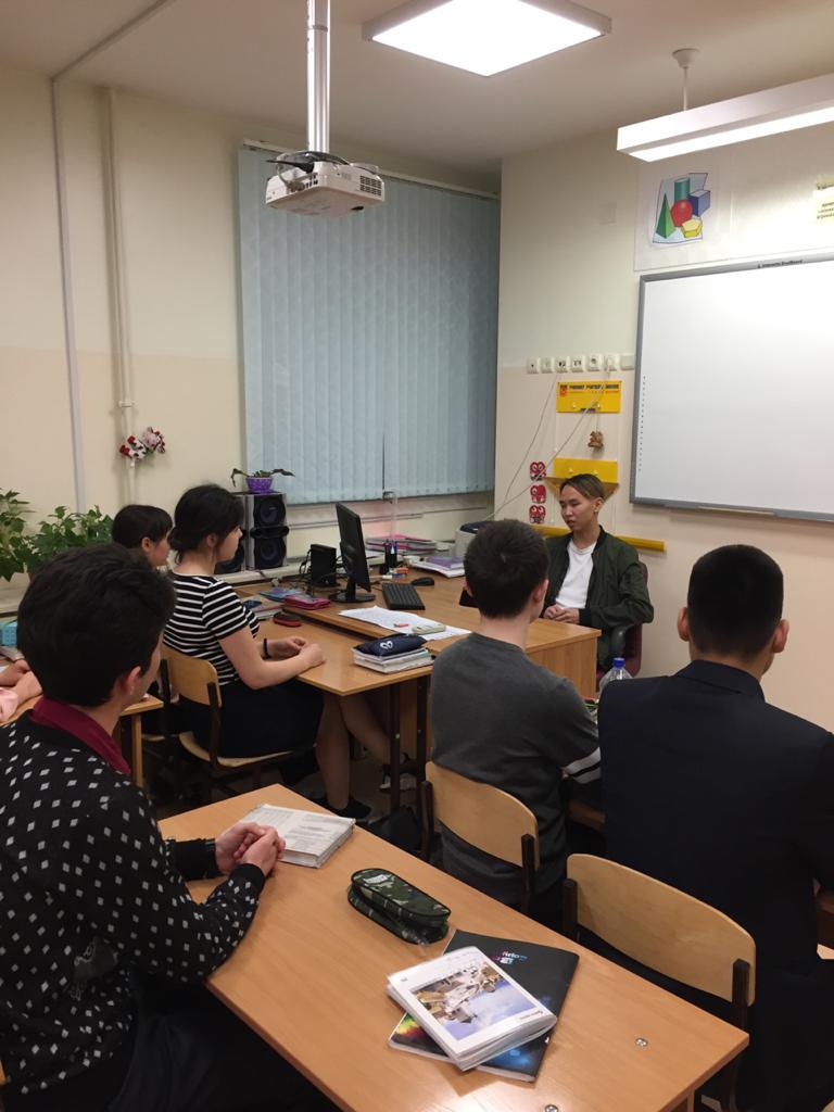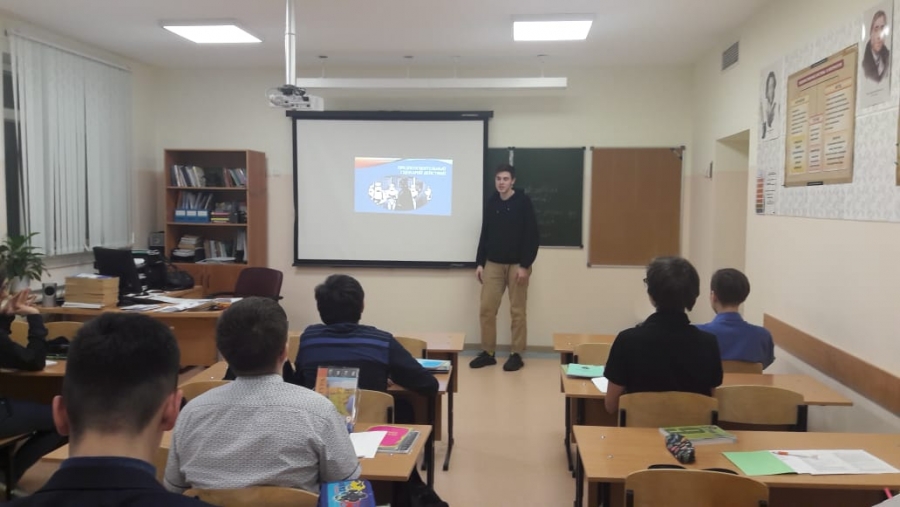 В рамках Всероссийского проекта «Классные встречи» Российского движения школьников в лицее состоялся ряд встреч. Одна из них прошла 11 декабря с полуфиналистом Всероссийского конкурса «Большая перемена» Николаенко Фёдором. Участниками встречи стали девятиклассники лицея. Федор рассказал ребятам о том, как попал на этот проект, поделился своими впечатлениями о победе в своей номинации, поездке в г. Хабаровск на полуфинал. Там во втором туре Фёдор в составе команды представлял свой проект заселения Луны, который в итоге получил приз зрительских симпатий.