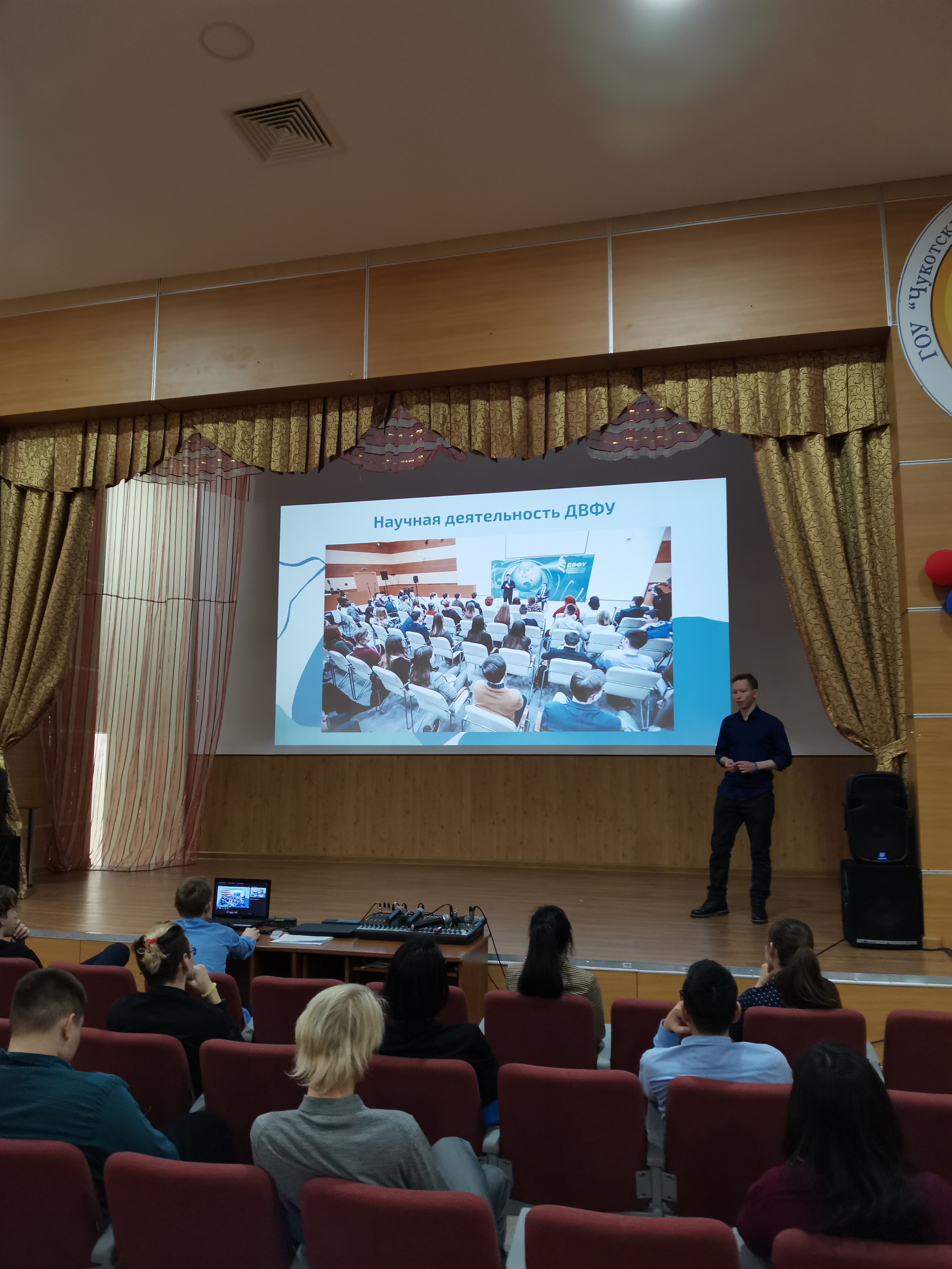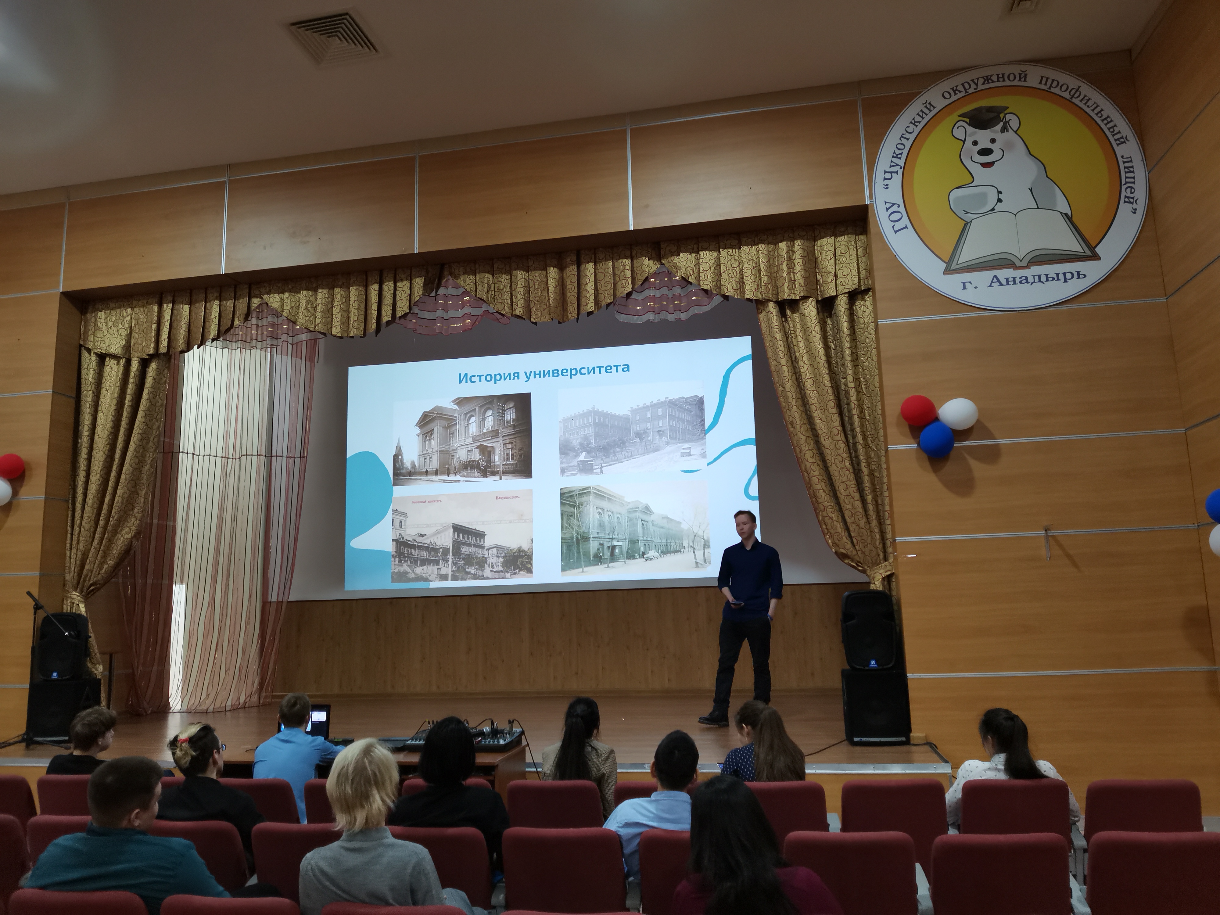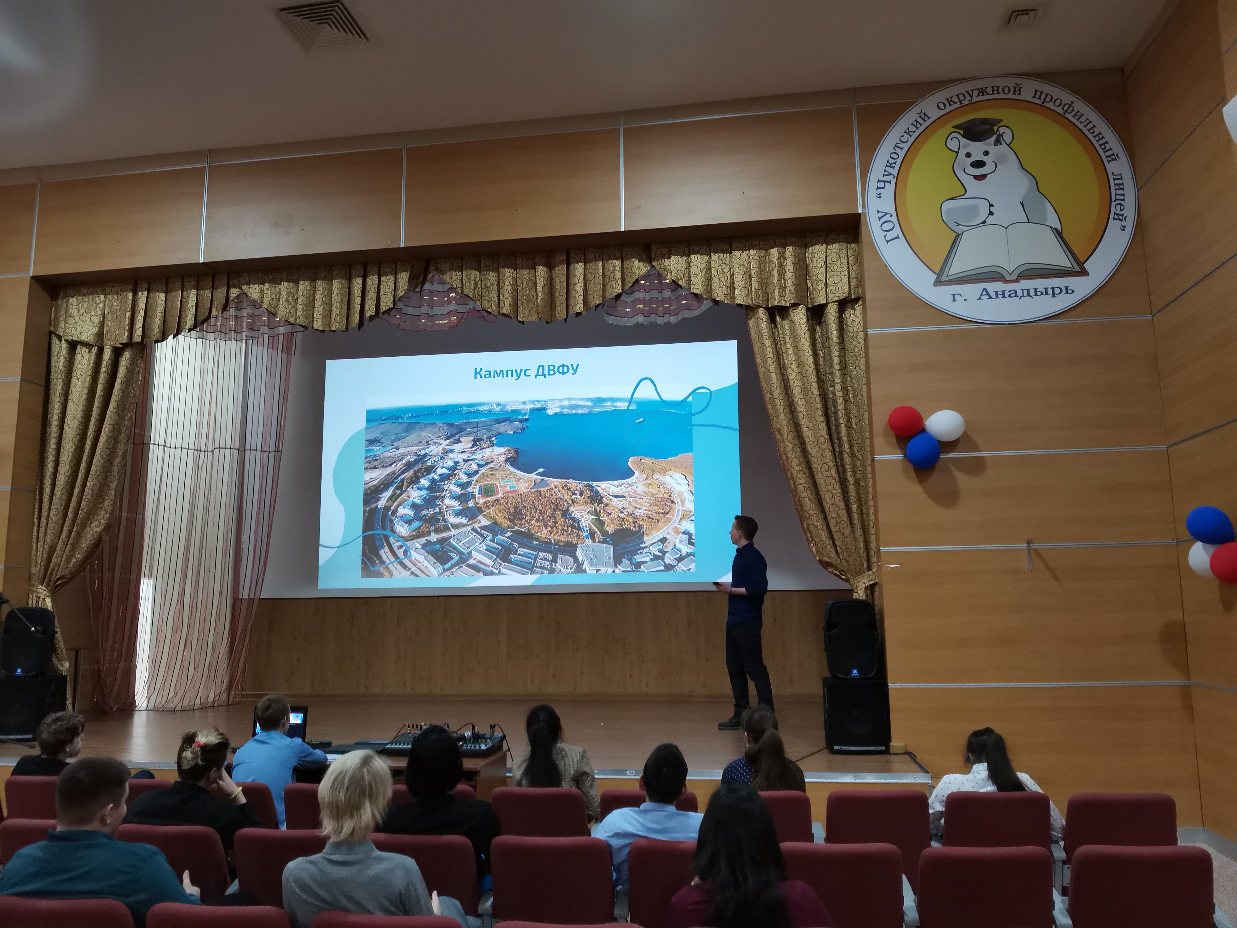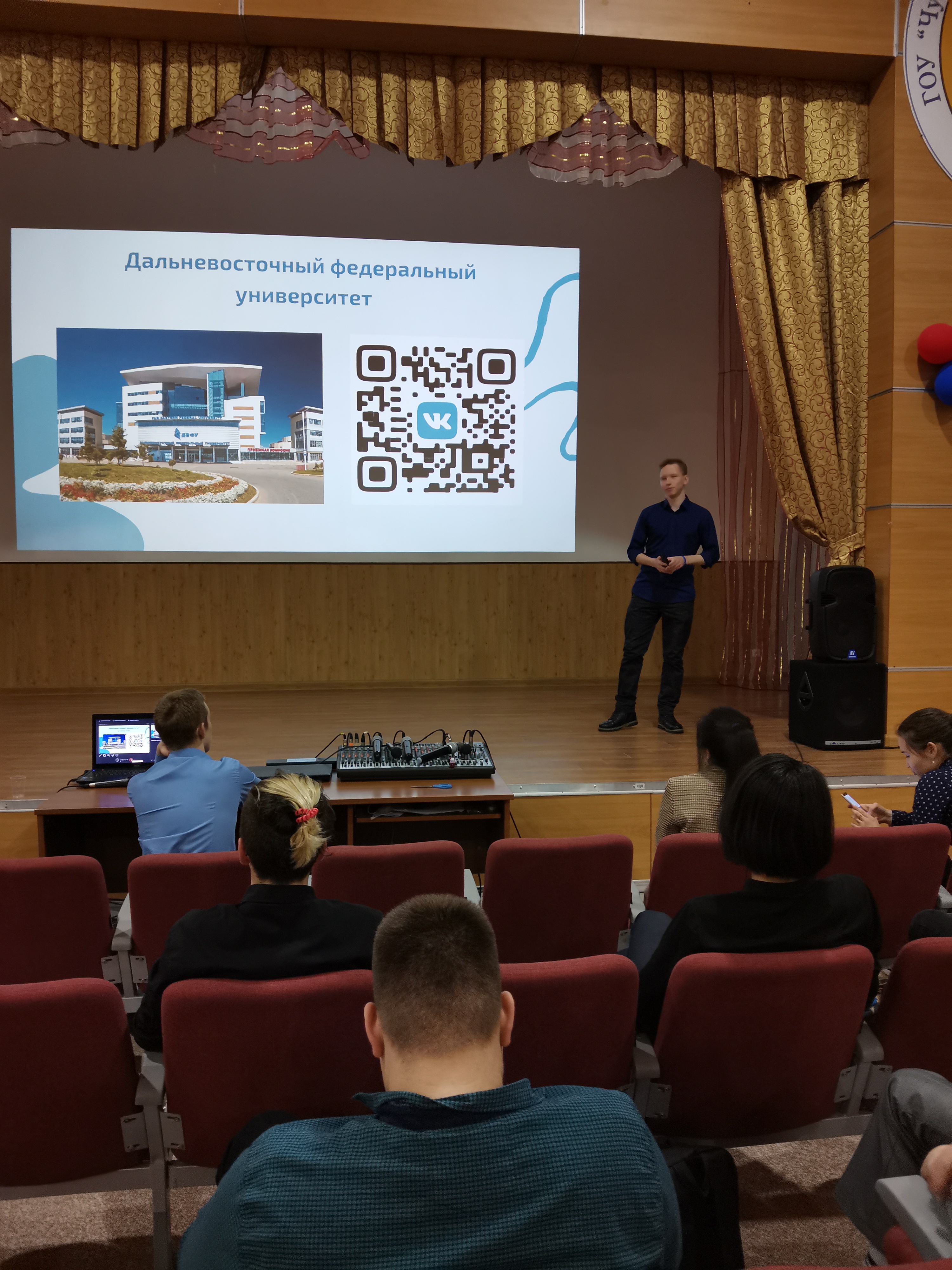 В рамках Всероссийского проекта Российского движения школьников «Классные встречи» 24 февраля в лицее состоялась встреча будущих выпускников с Маляренко Александром, который в настоящее время является студентом ДВФГУ. Александр в дружеской беседе рассказал об истории Университета, учебе в этом престижном учебном заведении, условиях поступления, о профилях обучения, научной деятельности, быте и досуге студентов. Были рассмотрены вопросы и социальной помощи студентам (стипендии и другие выплаты). Рассказ Александра сопровождался показом презентации. Возможность и престижность обучения в Дальневосточном Федеральном Университете заинтересовала многих одиннадцатиклассников лицея. Пожелаем им стать студентами этого ВУЗа, а Александру- успехов и удачи в дальнейшей студенческой жизни.