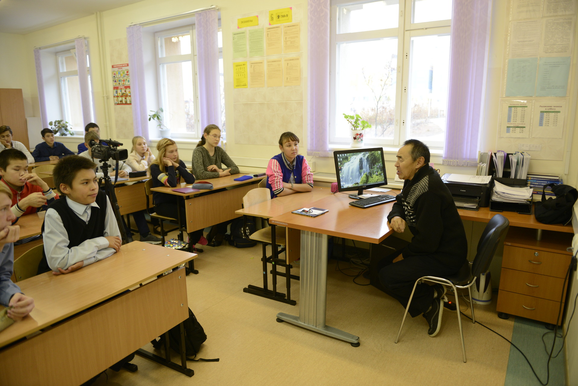 Что мы знаем об оленеводстве? К сожалению, для многих ребят эти знания приходят только из книг и с экранов телевизоров. Но ничего не может быть интереснее живого общения. 03 октября для учащихся 8 класса состоялась встреча с оленеводом, наставником оленеводческой бригады муниципального сельхозпредприятия «Амгуэма» Ракылым Григорием Дмитриевичем, который сам является потомственным оленеводом. Григорий Дмитриевич рассказал об истории оленеводства, укладе кочевой жизни, климатических условиях, которые влияют на хозяйственную деятельность. В беседе – диалоге затронуты были и такие темы, как уникальность чукотской одежды, особенности чукотского языка и другие. Ребята задавали различные вопросы. В свою очередь Григорий Дмитриевич посетовал, что в настоящее время мало молодежи, общающейся на родном языке, соблюдающей обычаи и традиции предков, и призвал ребят быть более бережливыми к нематериальному наследию чукотского народа.
