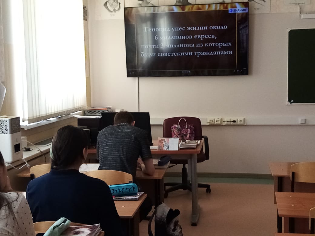 В Чукотском окружном профильном лицее с 18 по 29 января прошла Неделя памяти жертв Холокоста. В каждом классе на уроке памяти «Помнить, чтобы жить!» для учащихся демонстрировался тематический фильм образовательного портала «Знинио». Лицеисты узнали о почетном звании «Праведники народов мира», которое получали герои, рисковавшие собственной жизнью ради спасения евреев, о дневнике Анны Франк. На уроках памяти использовались посвященных этому ужасающему событию произведения поэтов Евгений Евтушенко, Андрей Дементьев, Муса Джалиль и других. В заключение классного часа вниманию ребят были представлены памятные мемориалы в различных городах мира