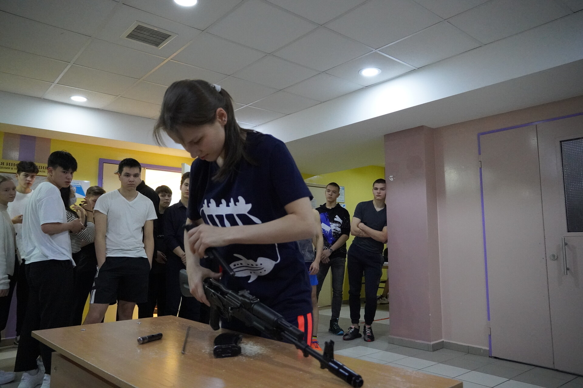 21 февраля проведена военно-спортивная эстафета, которая включала в себя сборку-разборку автомата Калашникова, основы медицинских знаний, комплексно-силовые упражнения, исторический конкурс «Равнение на героев», полосу препятствий. 22 февраля в спортивном зале лицея состоялось общее построение всех классов Чукотского окружного профильного лицея и прошел Смотр строя и песни. 12 команд классов по 10 человек были разделены на младшую (8-9 классы) и старшую (10-11 класс) группы. Позитивный настрой и хорошее настроение всем присутствующим в спортивном зале создало креативное выступление команды педагогов, сорвав продолжительные и бурные аплодисменты. Судейство мероприятия осуществляли служащие пограничной части, преподаватель ОБЖ и педагог-организатор ОБЖ. В качестве критериев учитывались действия отделения в строю, исполнение песни, действия командира и другие. Жюри оценило высокий уровень подготовки команд. По сводному протоколу 3 место в общекомандном зачете в старшей группе заняла команда 11 В класса, вторыми стали ребята из 11 Г класса. Команда 10 В класса продемонстрировала отличную подготовку и стала несомненным лидером состязаний. В младшей группе новички 8 Б класс уверенно вошел в число призеров, заняв 3 место. Команда 9 Б класса, опередив восьмерок всего на 2 очка, вышла на 2 место. Первенство победителя оказалось в руках команды 9 А класса. Победителям и призёрам состязаний, а также всем командам, принявшим участие в этом мероприятии, были вручены грамоты и сладкие призы.
