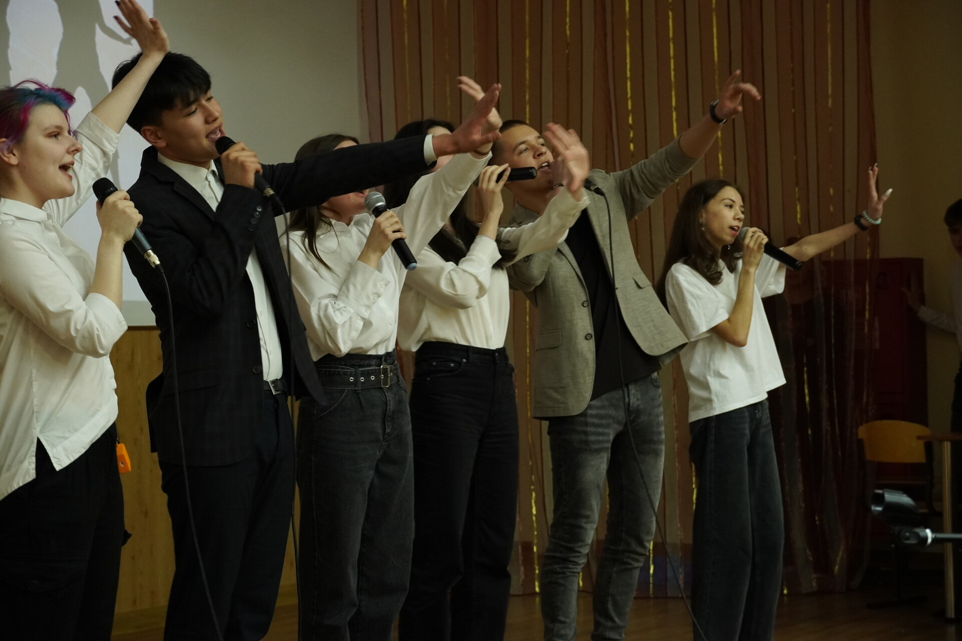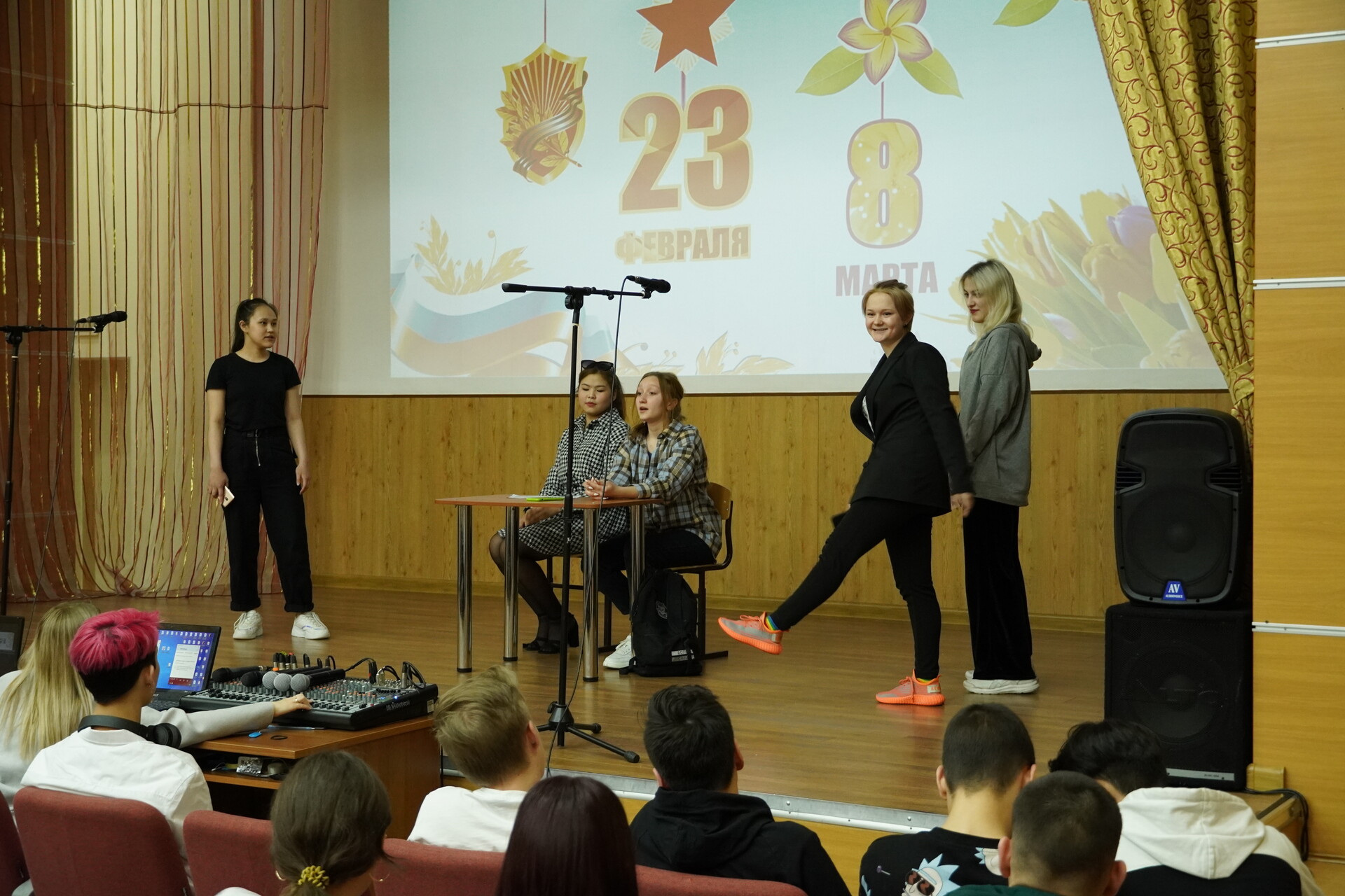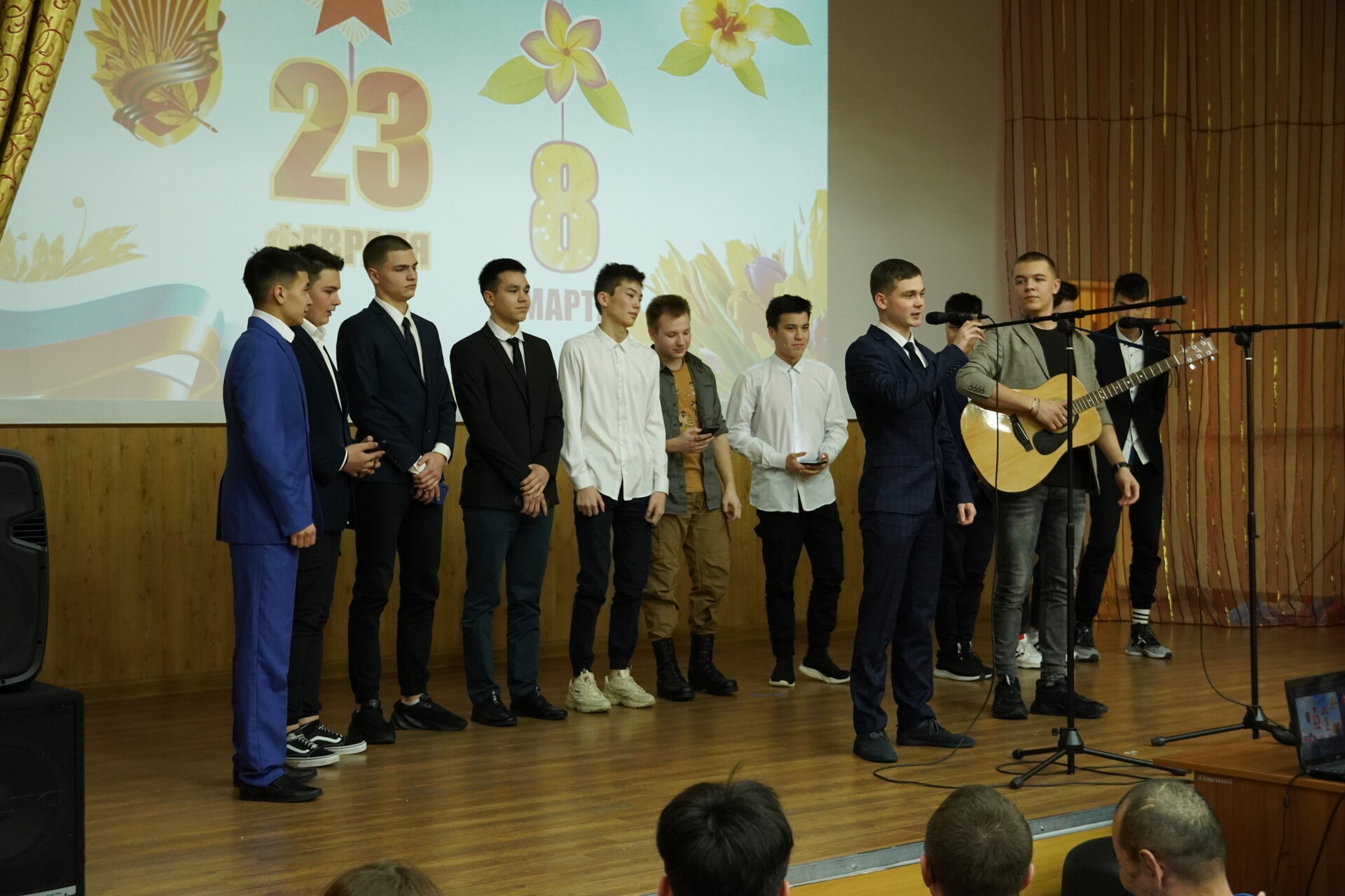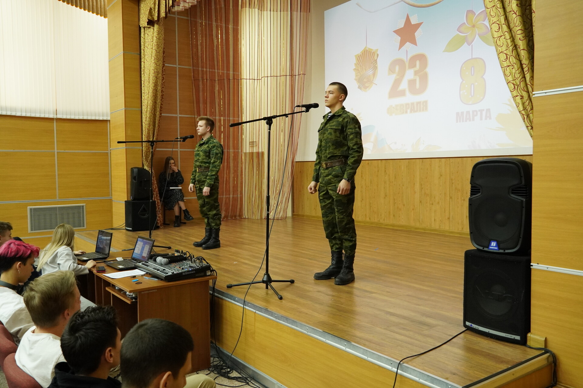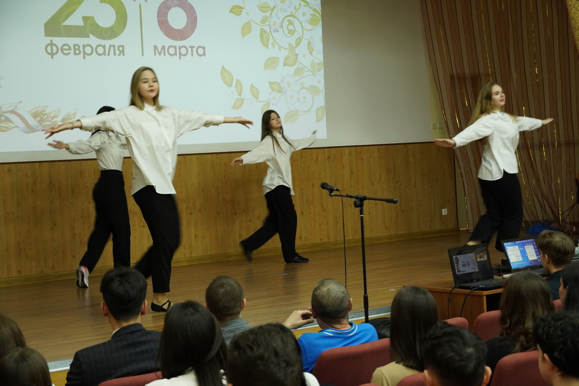 12 февраля в актовом зале нашего лицея прошло праздничное мероприятие – концерт, посвященный весьма оригинальному празднику! География этого праздника охватывает период с 23 февраля по 8 марта – «Международный день женщин, влюбленных в защитников Отечества!» В поздравительной программе принимали участие творческие коллективы-студии лицея. Танцевальная студия «Отражение» открыла концерт зажигательным танцем «Ты-морячка, я-моряк», а участники вокальной студии «Лад» подарили всем зрителям попурри из популярных хитов 80-х. Учащиеся лицея разных классных коллективов также подготовили свои поздравления. Девочки 8 «Б» класса показали интересную миниатюру на тему подготовки к 23 февраля и исполнили песню, которую адресовали сильной половине своего класса. Ученицы 8 «А» класса подготовили для всех очень яркий танец «Катюша». Сильная половина классных коллективов тоже не осталась в стороне и подготовила свое ответное слово. Юноши 11-х классов подарили прекрасное поздравление для всех присутствующих в зале женщин, девушек и девочек. Девушки выпускных классов ответили трогательным видероликом-нарезкой лицейских дней, где в главных ролях были юноши этих классов. Завершением праздничного концерта стала финальная песня от вокальной студии. На такой красивой ноте завершился наш весенний праздник, доставивший много радости, улыбок и приятных впечатлений всем присутствующим.