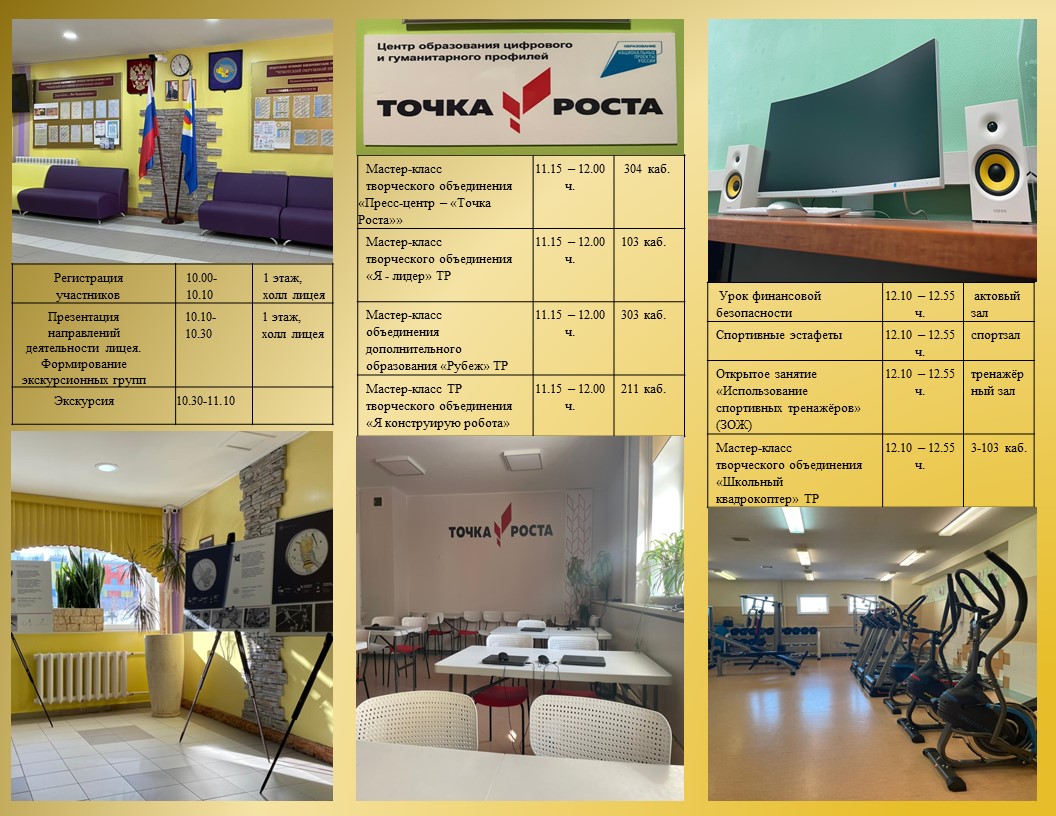 экскурсия по лицею,  мастер-классы, консультирование по вопросам поступления в лицей, обучения, проживания.