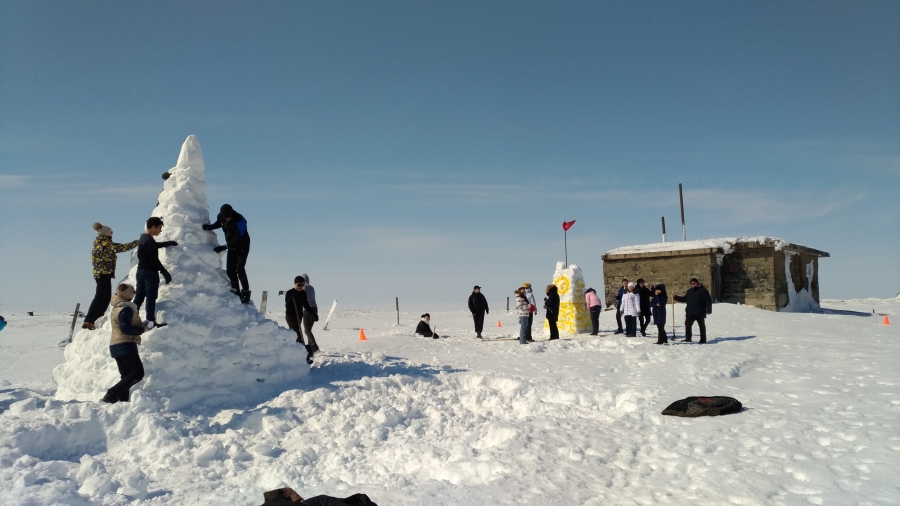 04 мая 2019 года будущие выпускники, учащиеся четырёх одиннадцатых классов нашего лицея, во главе со своими классными руководителями, а также учителями ОБЖ и физкультуры посетили сопку Михаила. В этот день к старшим выпускникам присоединились и учащиеся 9-х классов со своими классными «мамами». Такое мероприятие проводится ежегодно и стало уже доброй традицией нашего лицея. И, хотя для девятиклашек такая поездка стала первой, надеемся, что в дальнейшем это уже будут совместные выезды. Погода не подвела и выпускникам предоставилась замечательная возможность активно и весело провести время, почувствовать себя большой семьей, и конечно же, насладиться красотой Чукотки. Каждый класс, приложив немало физических и творческих усилий, должен был возвести снежную скульптуру и презентовать её педагогам. Оценивалась высота, оригинальность и визитная карточка совместного изобретения. Членам жюри пришлось очень сложно, так как каждая скульптура получилась уникальной. 11 «А» возвели самую лицейско –патриотическую башню. Самую высокую скульптуру построил 11 Б класс. Нетрадиционно подошли к своей скульптуре 11 «Г» класс, построив самый сказочный замок. Патриотичную направленность своей скульптуре придали учащиеся 11 «В» класса соорудив из снега танк Т-34, который стал самой патриотичной скульптурой. Девятки обоих классов стали сплоченной командой и тоже построили свою крепость под названием «Монолит». Все команды получили сладкие призы. Чуть позже за «походным» столом ребята пили чай, делились впечатлениями и дружно исполняли любимые песни под гитару. Завершилось мероприятие спортивными играми.