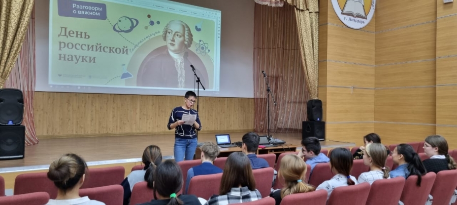 06 февраля 2023 года среди обучающихся 8 и 11 классов Чукотского окружного профильного лицея прошел урок из цикла «Разговоры о важном» на тему «День российской науки». Цель - развитие ценностного отношения обучающихся к достижениям человечества, воспитание гордости за свою страну через осознание вклада российских ученых в развитие мировой науки.