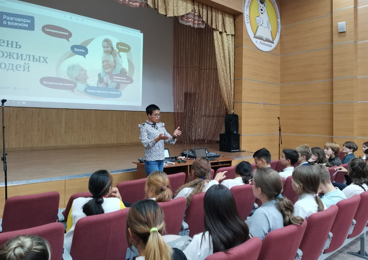 Золотая осень - прекрасное время года. В это время - 1 октября - отмечается праздник - День пожилых людей. 26 сентября 2022 года для обучающихся параллелей 8 и 11 классов прошло занятие в рамках "Разговоры о важном", тема "Обычаи и традиции моего народа: как прошлое соединяется с настоящим?". Цель - формирование традиционных семейных ценностей и уважительного отношения к людям старшего поколения; воспитание нравственных качеств личности (доброта, милосердие, сострадание, благородство, готовность прийти на помощь), формирование осознания обучающимися достоинств жизненного опыта. Вниманию ребят был представлен видеоролик, из которого они узнали, когда официально в России был провозглашен праздник, каков его логотип. Мероприятие прошло интересно, лицеисты поделились своим, пусть небольшим, жизненным опытом по сохранению семейных традиций, а также были заслушаны предложения для составления "Кодекса уважения и поддержки пожилых людей".