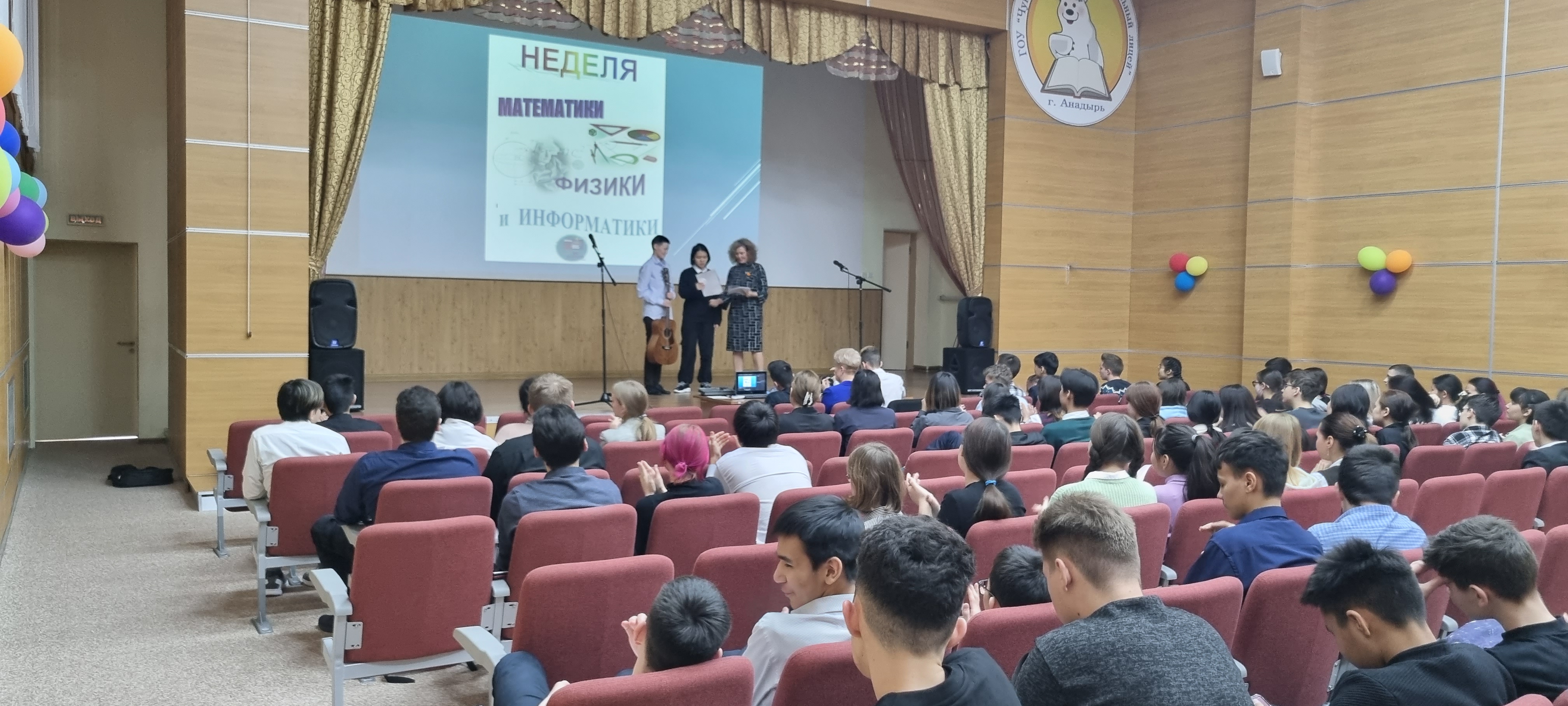 14 ноября 2022 года в Чукотском окружном профильном лицее прошла церемония закрытия предметной Недели математики, информатики и физики. Цель недели: повысить интерес школьников к изучению предметов технических дисциплин, вызвать положительные эмоции, подвести к самостоятельным выводам и обобщениям, обогатить кругозор учащихся дополнительными знаниями. На протяжении всей недели в доступной игровой форме проводились познавательные мероприятия по информатике, математике и физики, цель которых – пробудить у ребят интерес к предметам, удовлетворение потребностей учащихся в самопознании, самовыражении, самоутверждении, самореализации через внеклассную работу.
