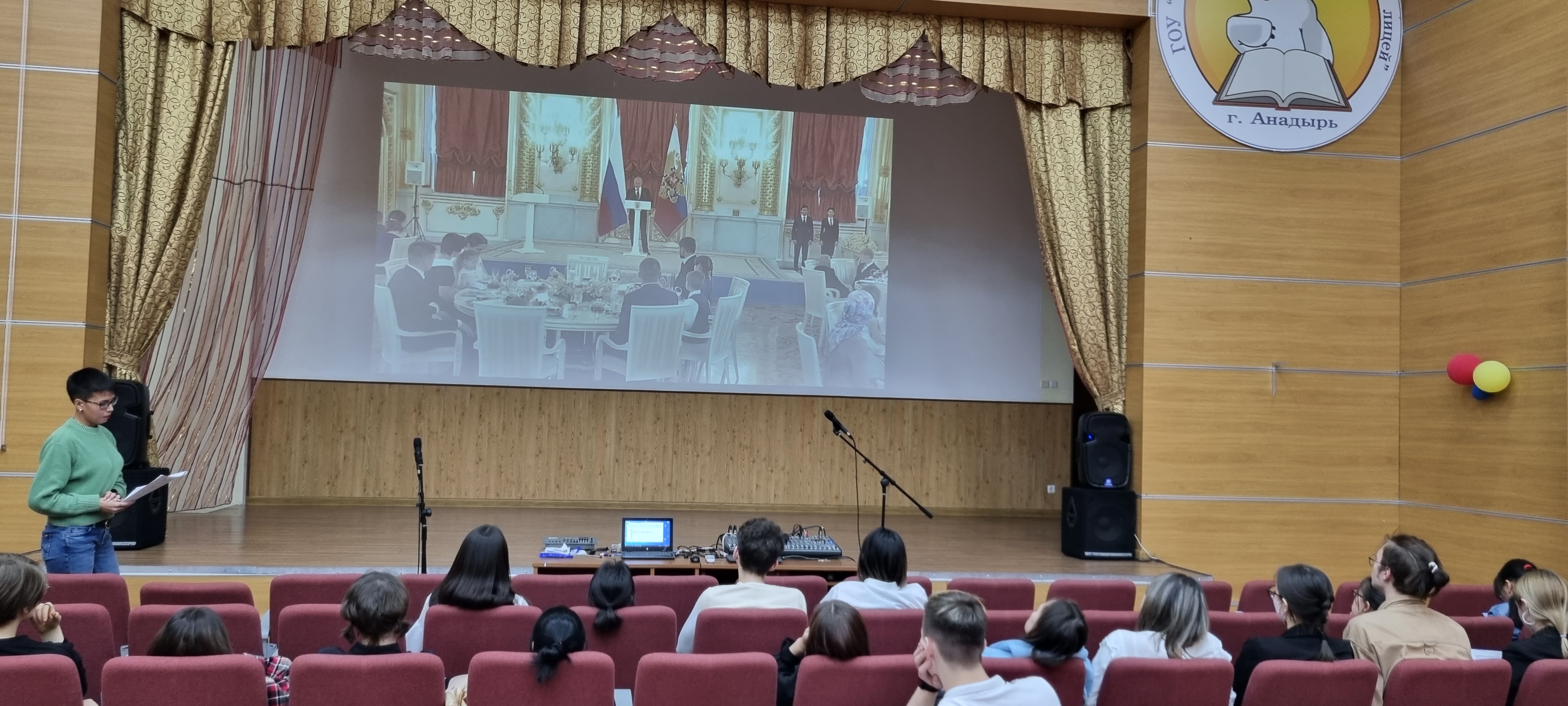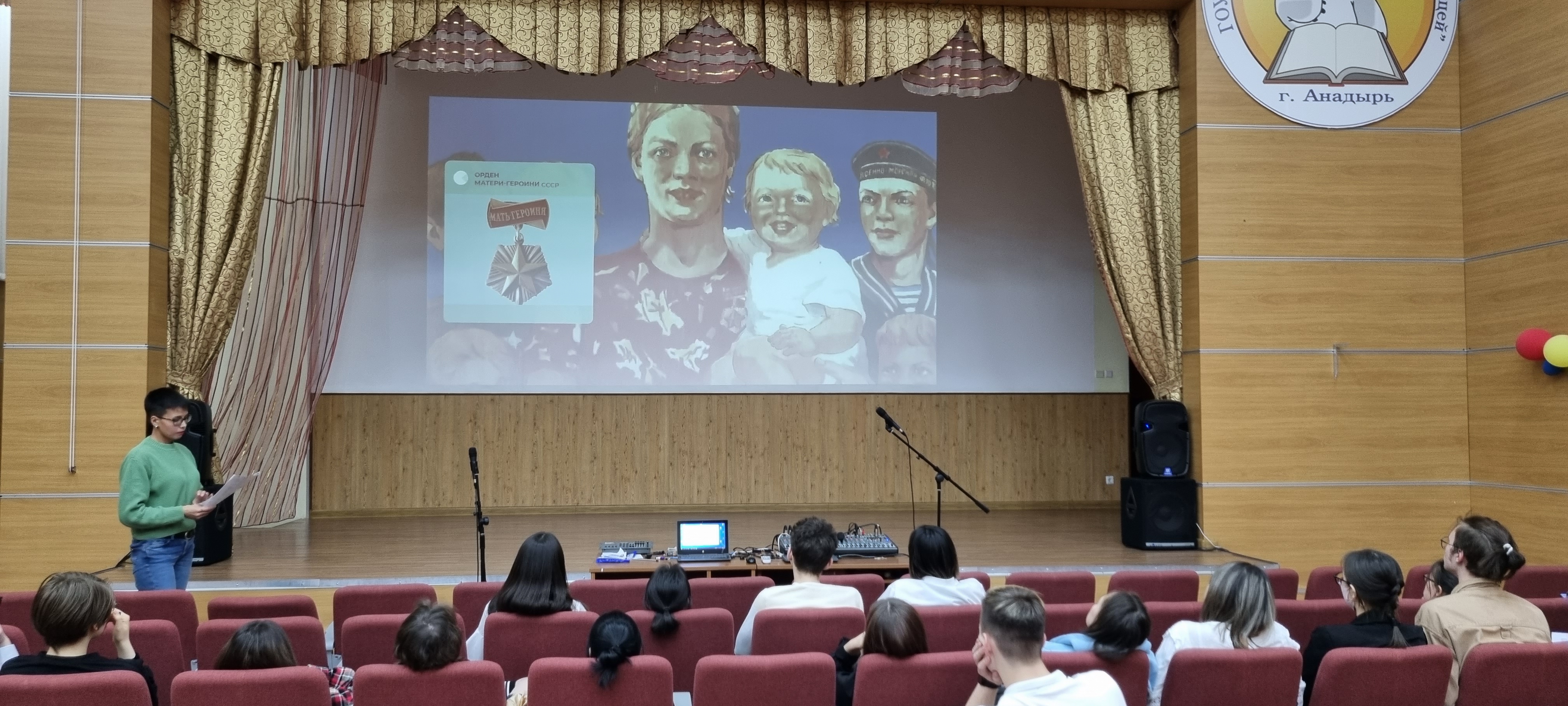 21 ноября 2022 года в актовом зале Чукотского окружного профильного лицея прошел очередной урок из цикла «Разговоры о важном» на тему «День матери» для обучающихся 8-х и 11-х классов (81 человек). Цель - формирование бережного отношения к женщине-матери, уважения к материнскому труду и к многодетным матерям России.