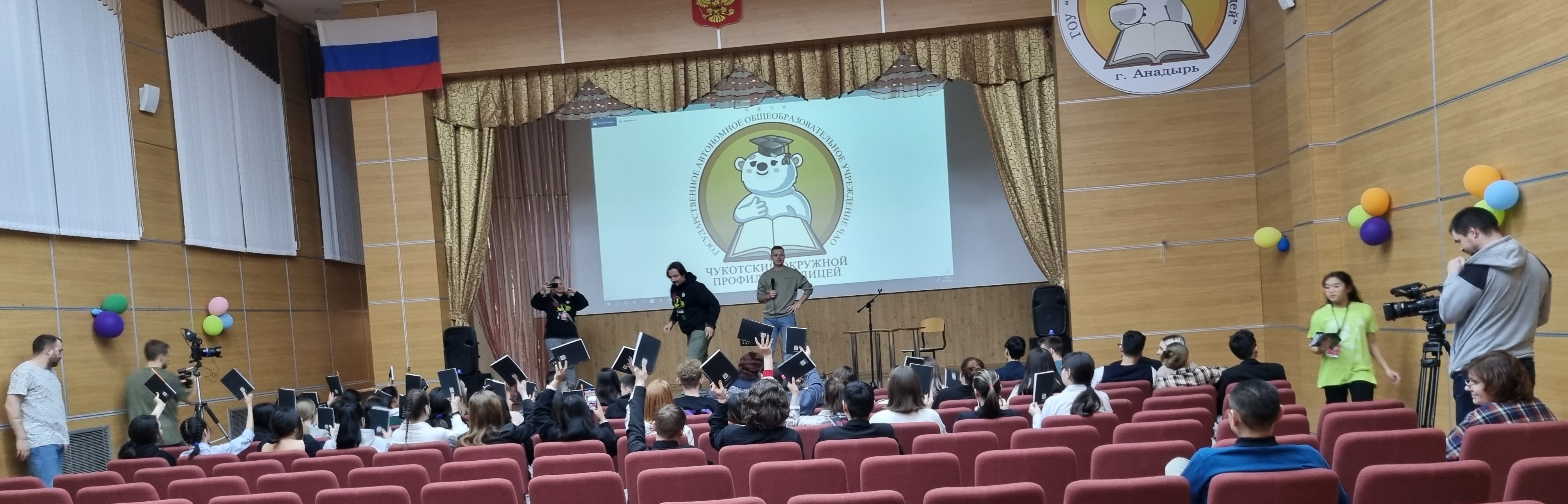 07 декабря 2022 года в актовом зале Чукотского окружного профильного лицея обучающиеся встретились с актером театра и кино Владом Канопкой – перспективным актером, звездой сериала «Молодежка». Возможность встретиться с любимцем публики появилась благодаря тому, что при поддержке президентского фонда культурных инициатив и Правительства Чукотского окружного округа в г. Анадырь проходит шестой арктический международный кинофестиваль «Золотой ворон». Цель – поделиться с ребятами опытом работы, рассказать об актерских буднях. Встреча прошла в два этапа: в формате «вопрос-ответ» и небольшого мастер-класса, в котором лицеисты приняли активное участие.