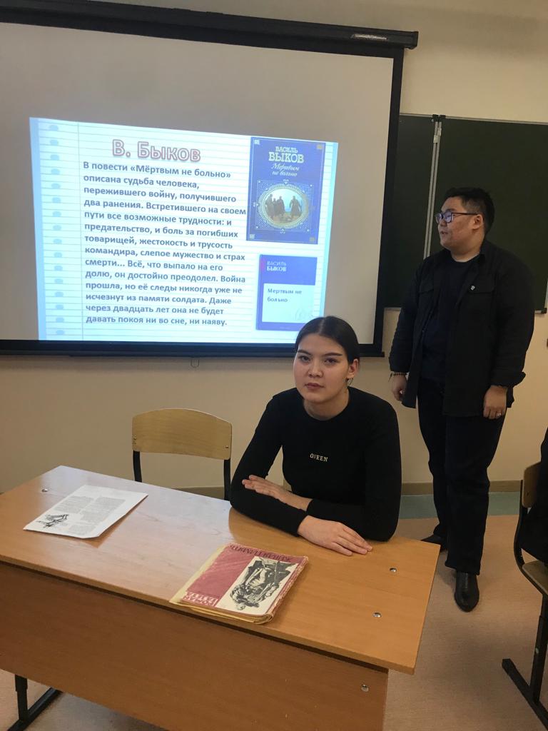 28 января 2023 года в Чукотском окружном профильном лицее согласно плану мероприятий Центра образования цифрового и гуманитарного профилей «Точка роста» в объединении «Литературная гостиная» была проведена читательская конференция «Книги о войне», приуроченная приближающемуся Дню защитника Отечества. Цель: воспитание гражданственности и патриотизма у подростков на примере героев произведений литературы о Великой Отечественной войне.