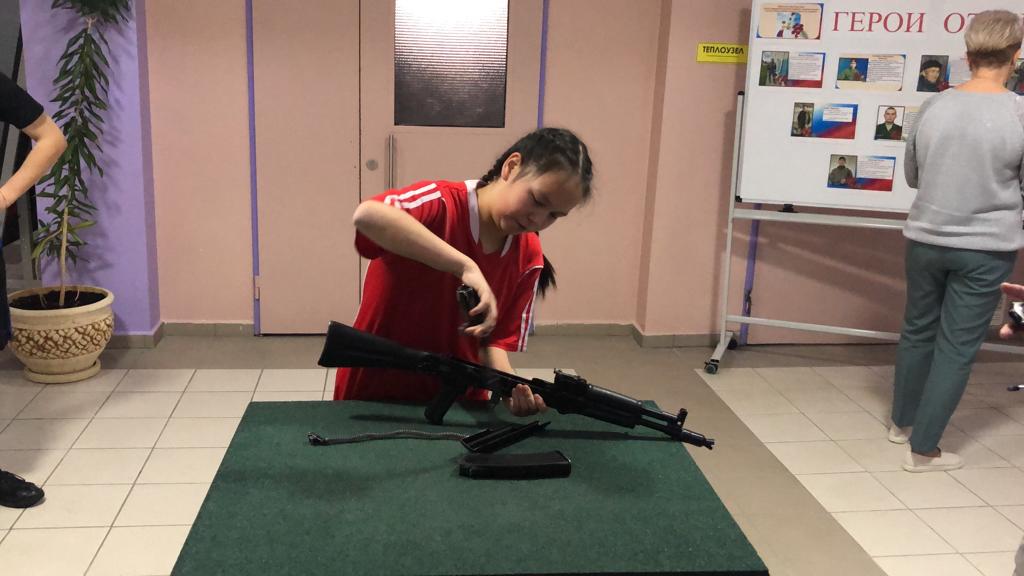 Команды 8-11 классов прошли испытания на полосе препятствий, выполнили комплексное силовое упражнение, продемонстрировали знания в области истории и медицины, а также скорость в разборке и сборке автомата Калашникова.