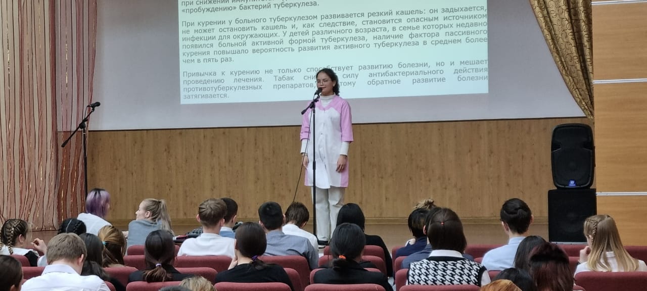 Студенты-медики в доступной форме рассказали ребятам о клинических проявлениях туберкулеза, профилактических мероприятиях, продемонстрировали тематические видеоролики. В завершение мероприятия была проведена рефлексия – лицеисты закрепили знания по теме встречи, а активные участники опроса были награждены футболками.