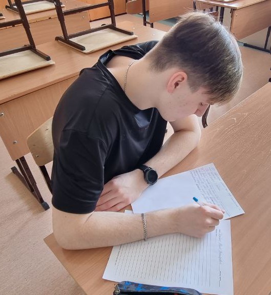 Ребятам были предложены два блока: «Личностные особенности» и «Общество и личность». Всего 21 тема для написания сочинения в жанре эссе, в которых ребята смогли поделиться своими размышлениями по одному из вопросов, которые касаются нашей Родины, жизни, каждого человека в нашей стране. После проведения инструктажа и оглашения списка тем учителем, ребята приступили к выполнению задания, на которое было отведено 40 минут.